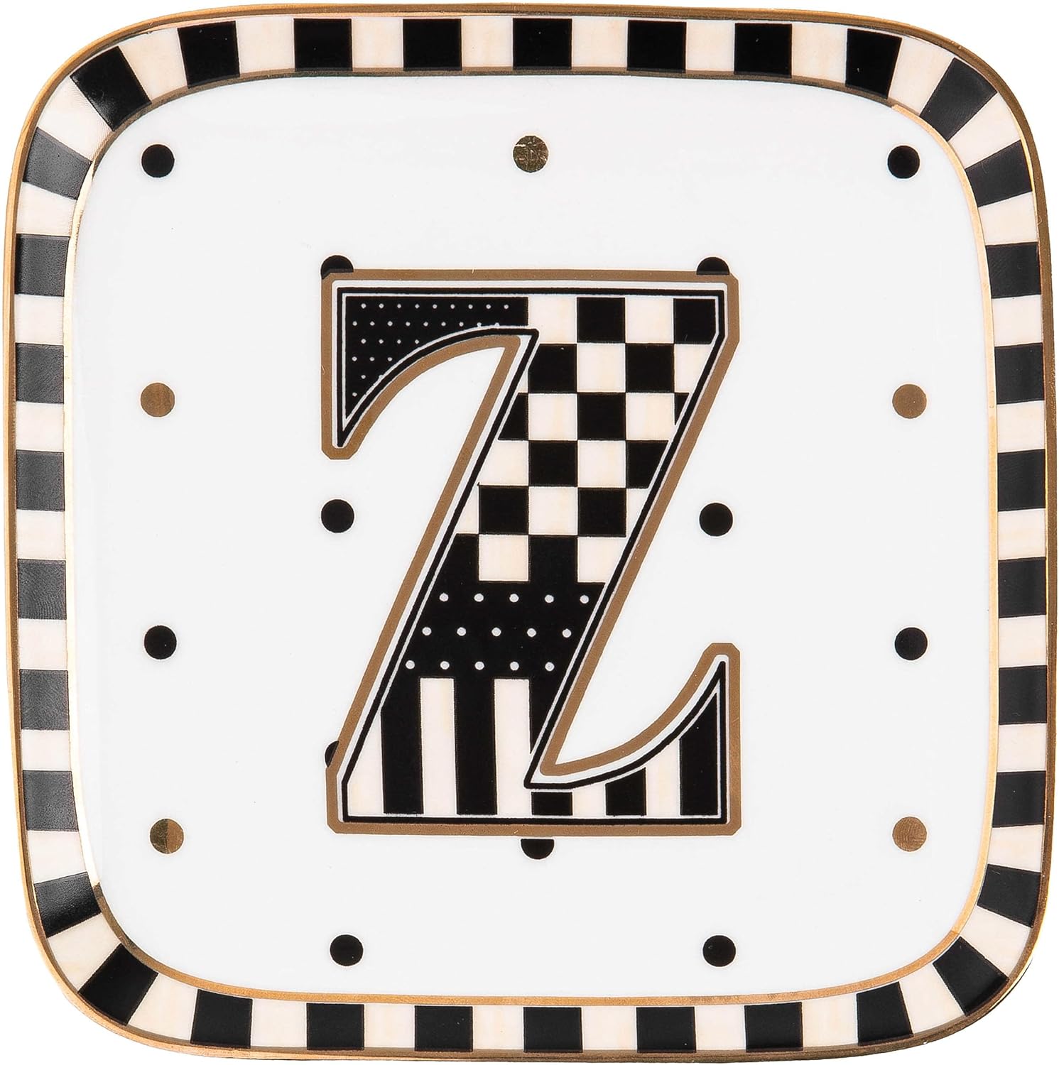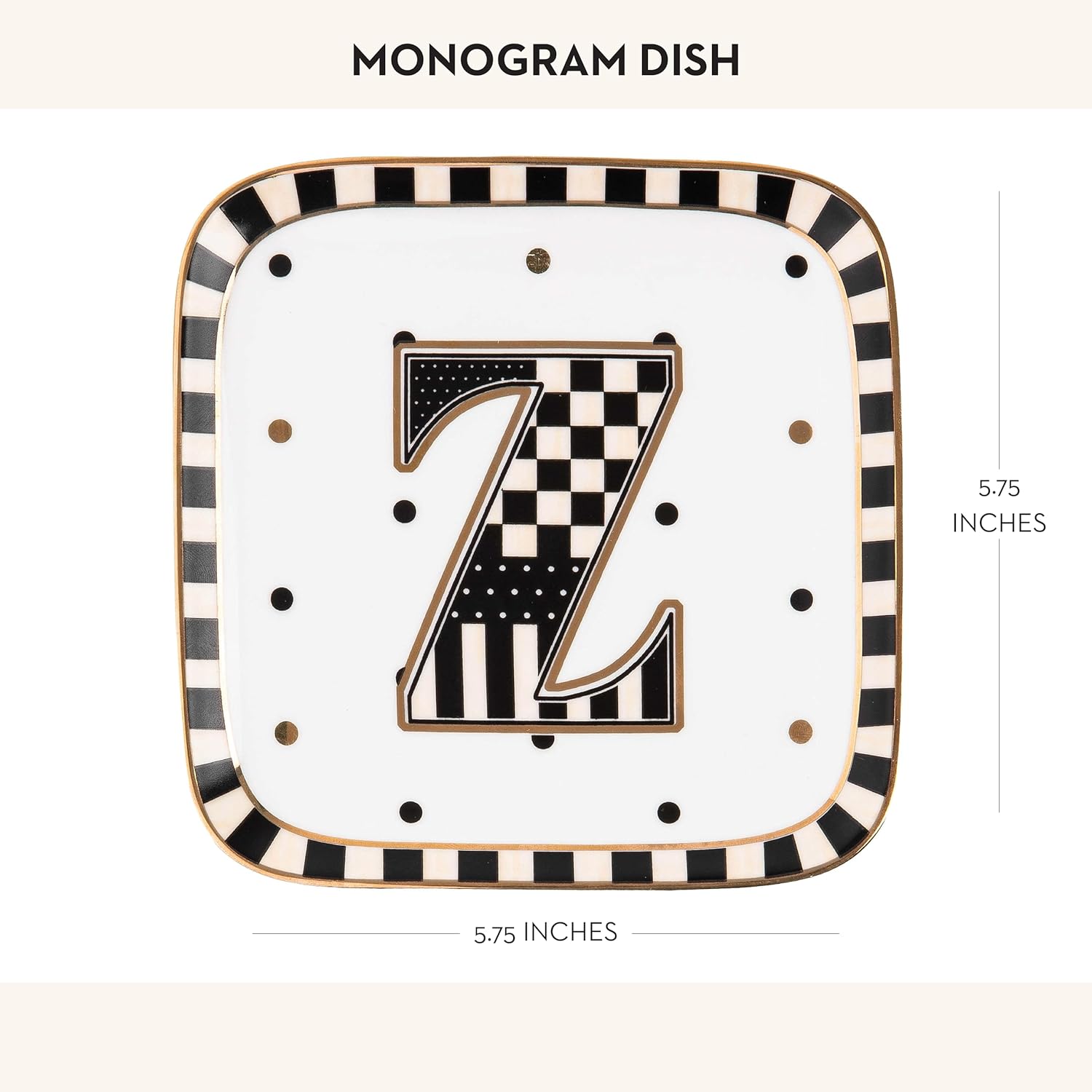 MACKENZIE-CHILDS Monogram Dish, Decorative Ceramic Letter Plate, 5 3/4" Square, Z