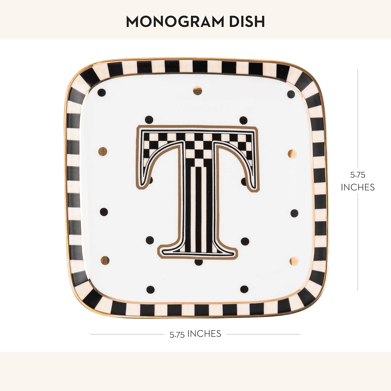 - CUTE LETTER TRAY: Each letter of the Monogram Dish collection is decorated in a combination of black-and-white patterns with a unique design. Picking your favorite letter gives you a custom small plate to use for extra-special meals or as room decor.