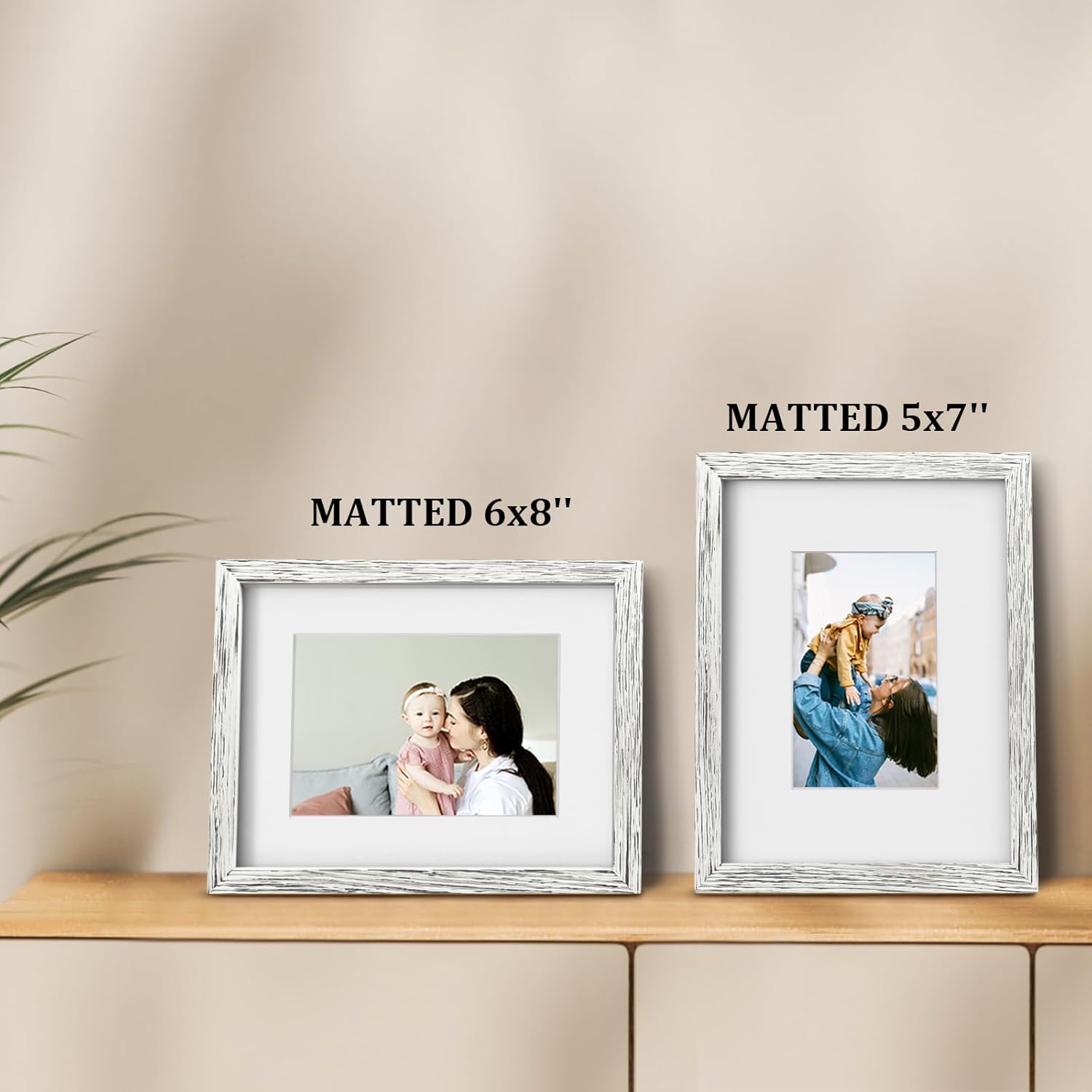 Egofine 9x12 Picture Frames Set of 4, Made of Solid Wood Covered by Plexiglass 5x7 and 6x8 with Mat or 9x12 without Mat, for Table Top Display and Wall Mounting Photo Frame Driftwood White