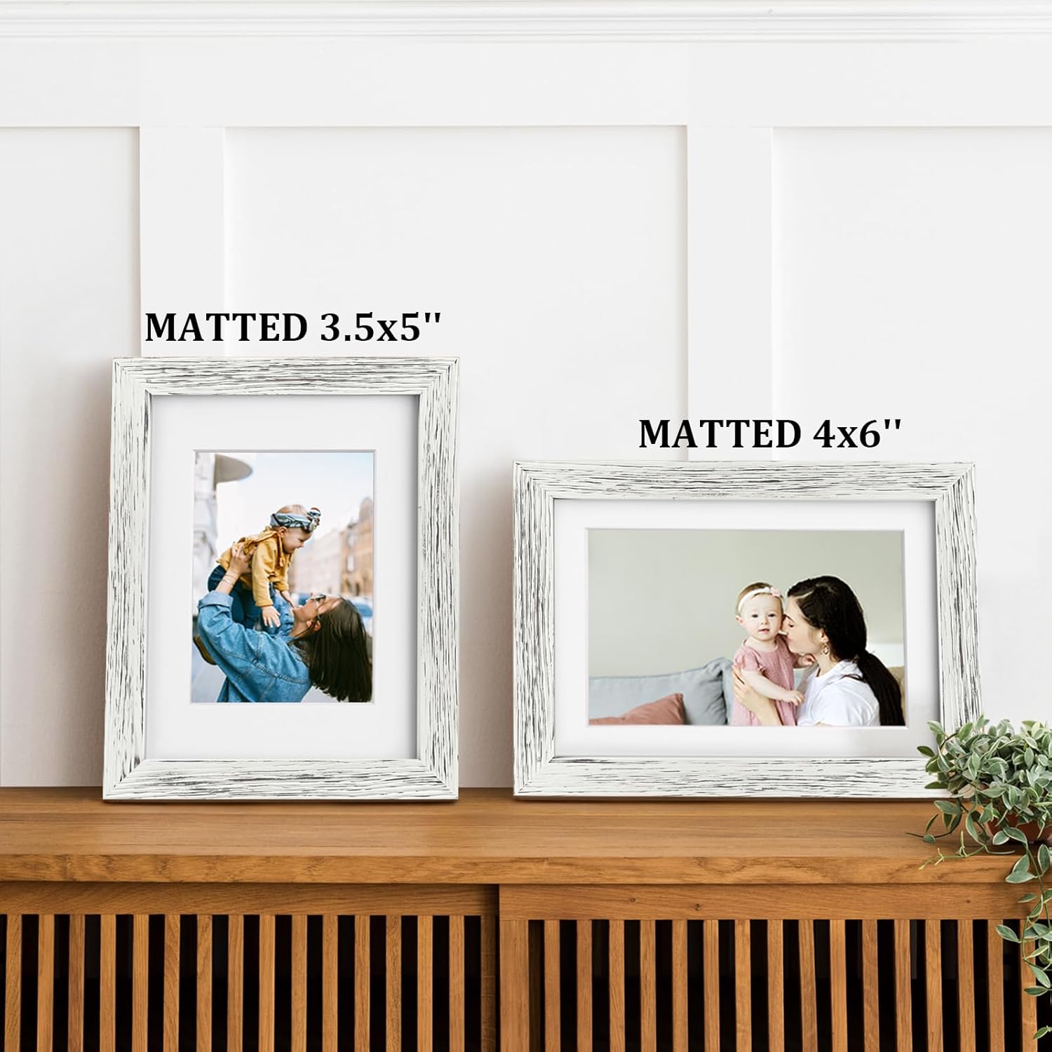 Egofine 5x7 Picture Frames Set of 4, Made of Solid Wood Covered by Plexiglass 3.5x5 and 4x6 with Mat or 5x7 without Mat, for Table Top Display and Wall Mounting Photo Frame Driftwood White