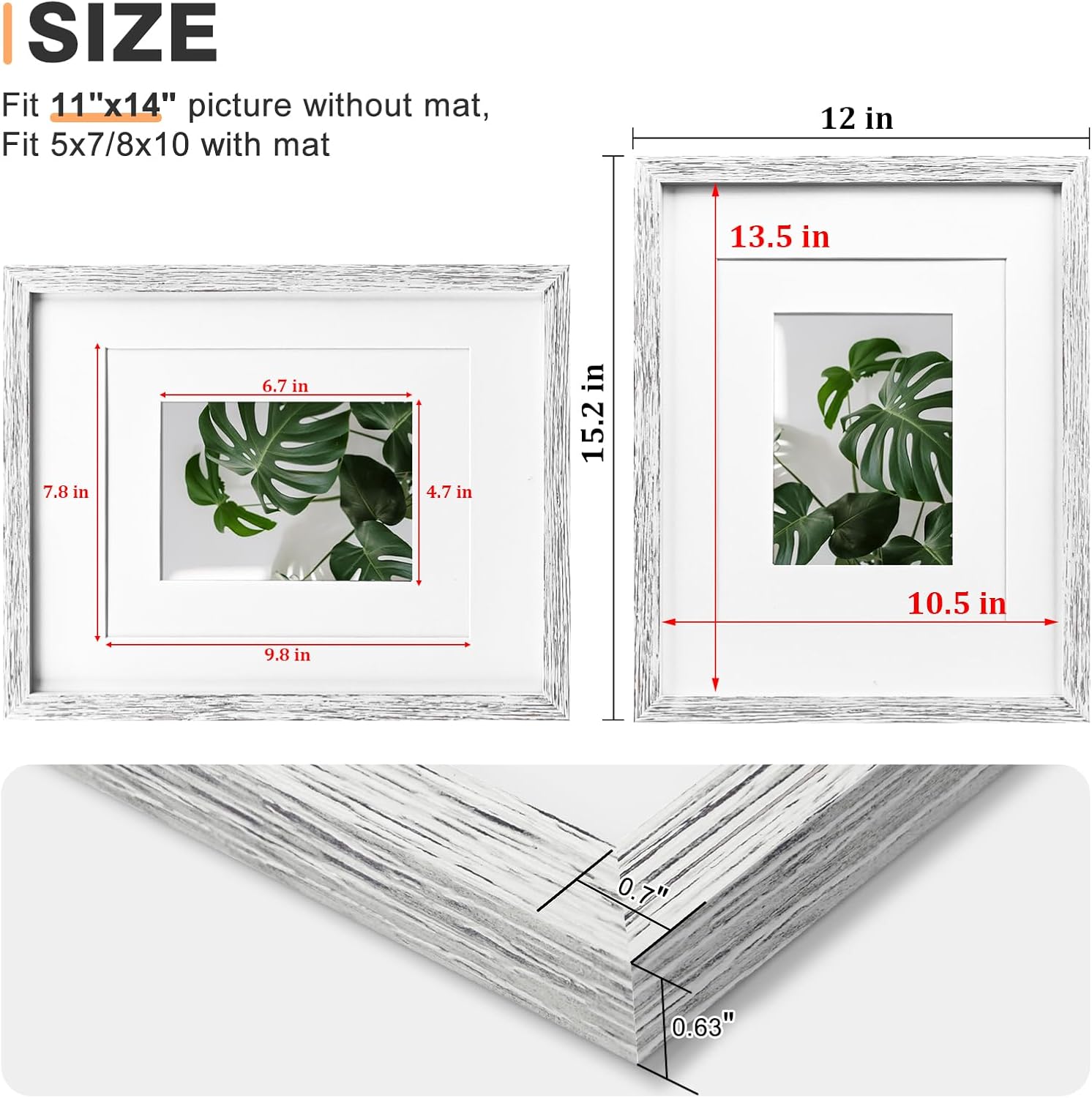 - DIMENSION - Overall dimension is 12x15.2 inch, back opening size is 11x14 inch, opening size is 10.5x13.5 inch, Mat opening size is 4.7x6.7 inch and 7.8x9.8 inch. Perfect for dress up any room in your home or office, Great gift for festival, Mother's day and best friend birthday.