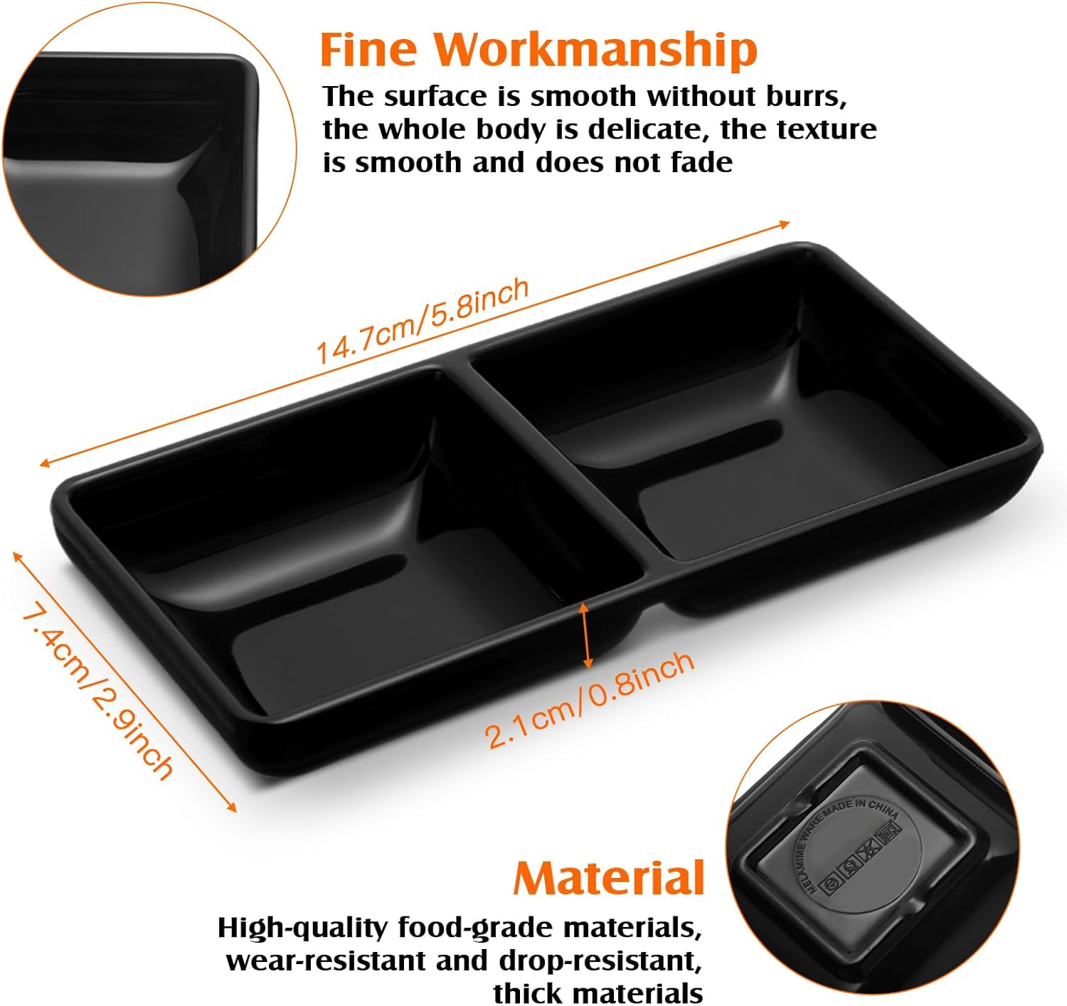- Quality Material: the 2 compartment sauce dish is made of quality material, not easy to stain, scratch or break, you can use this sauce bowl set with confidence; They are also easy to clean and wash, and you will be satisfied