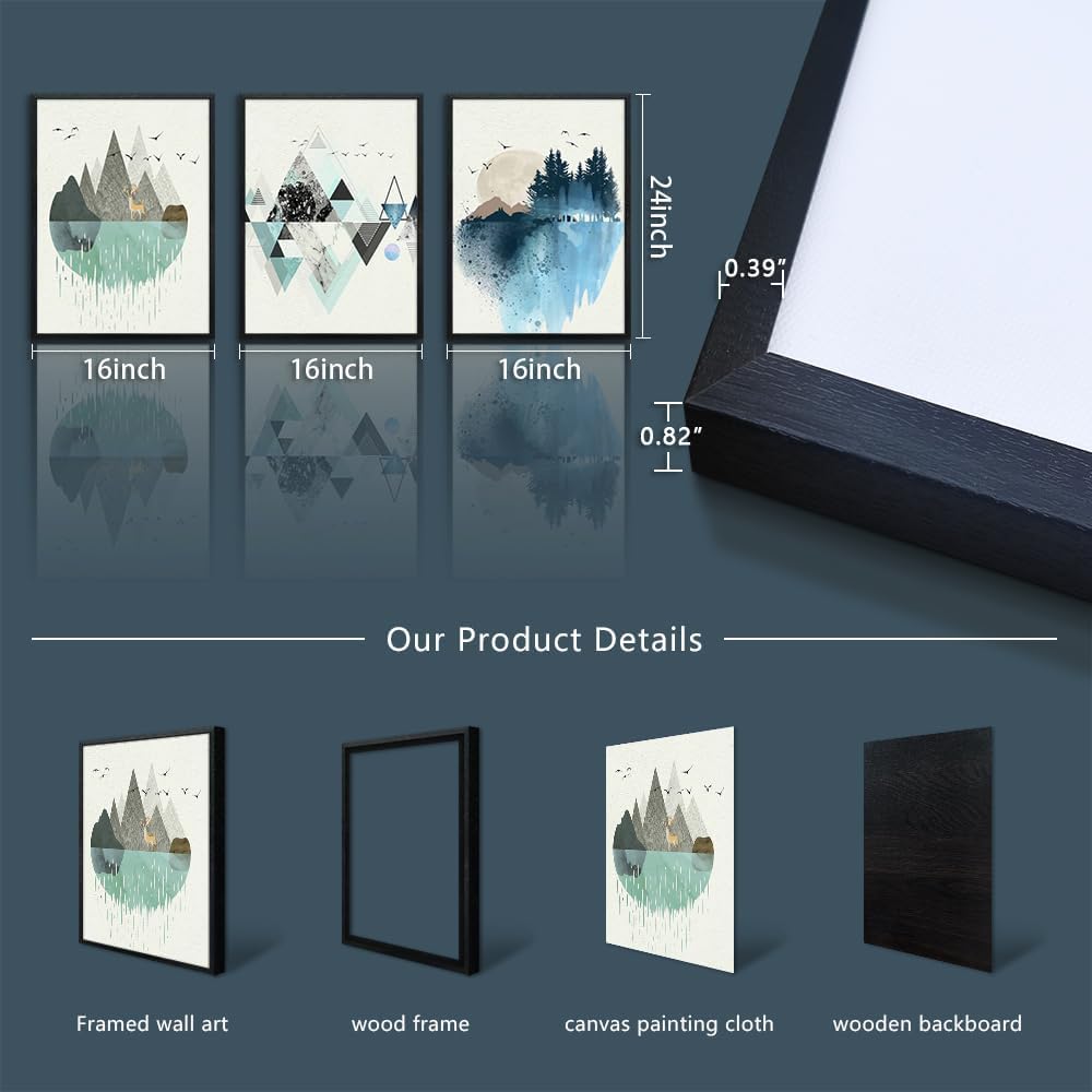 - 【FRAMED CANVAS WALL ART SIZE】Size Is :16x24inch (40x60cm)(Including The Outer Frame), total 3 Panels. Black Framed Wall Decor Art Wood Frame wall art。