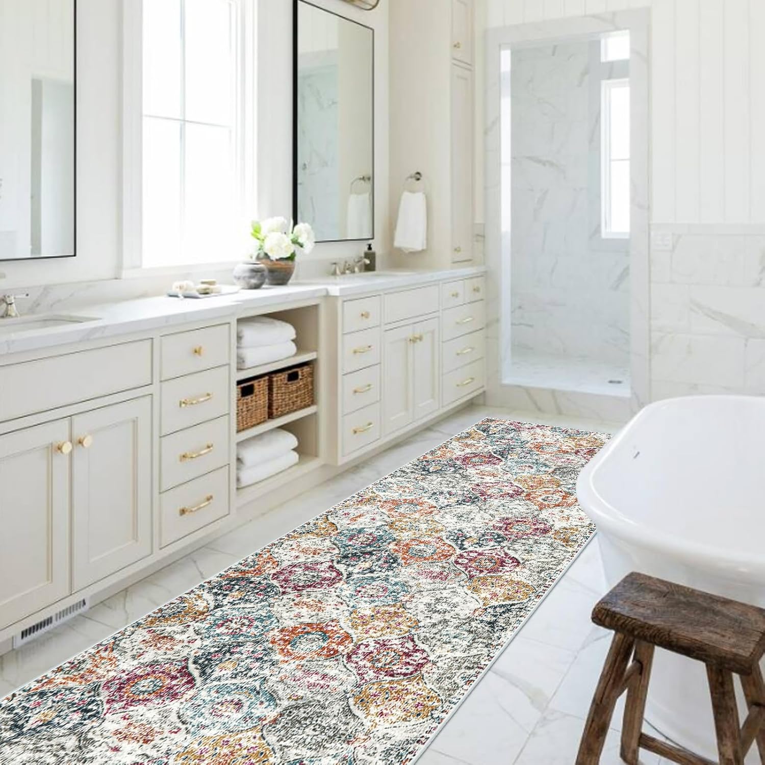 Lahome Moroccan Hallway Rug, 2'5''x8' Kitchen Runner Rugs Non Skid Washable Runners for Hallways, Ultra-Thin Oriental Carpet for Entryway Laundry Room Bedroom Bathroom, Aqua/Multi