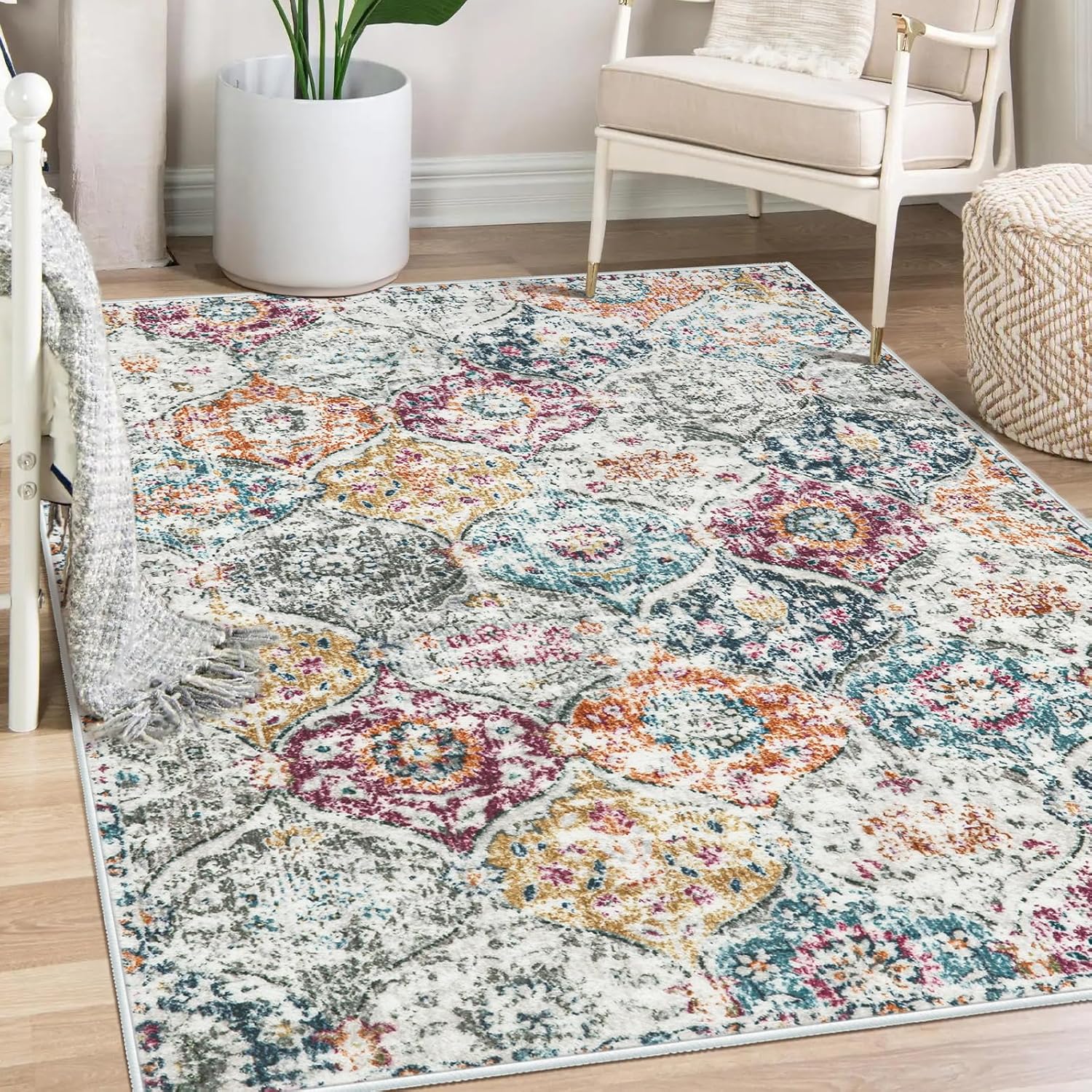 - Soft and Designed: This Lahome area rugs has a trendy faded style and a unique floral pattern, vintage tones blend with your home. This rug is made of faux wool fibers; Easy on the feet-soft as cotton balls; stain-resistant and non-shedding
