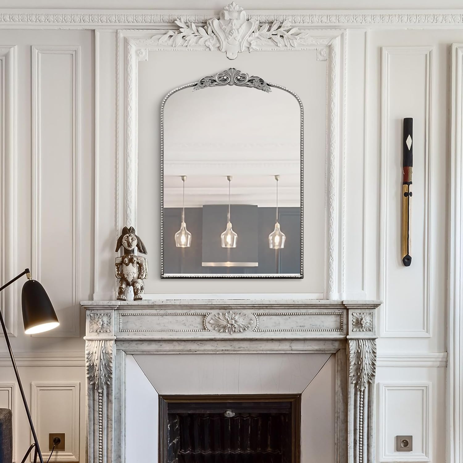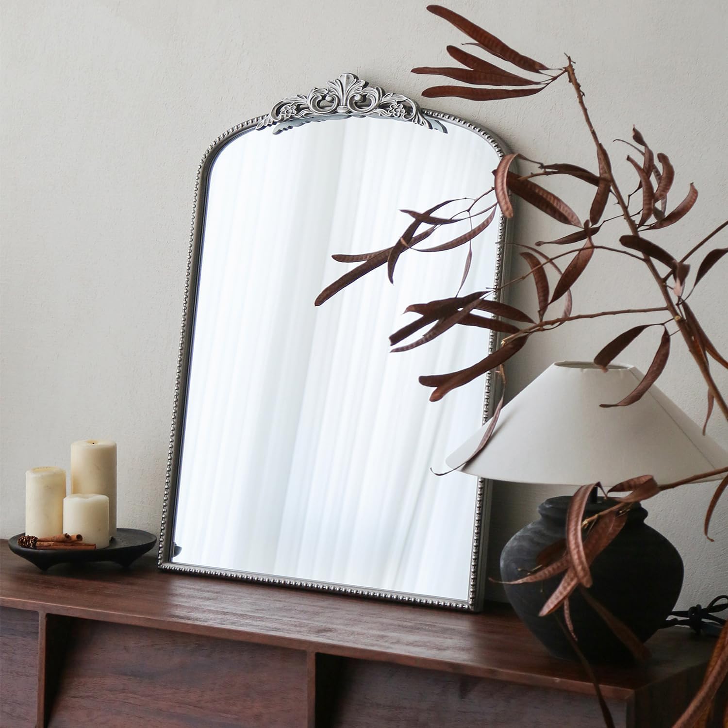 Micasso Vintage Traditional Silver Mirror: French Baroque Antique Mirror - Ornate Decorative Arched Mirrors for Wall/Bathroom/Entryway/Fireplace/Hallway - Home Decor for Living Room