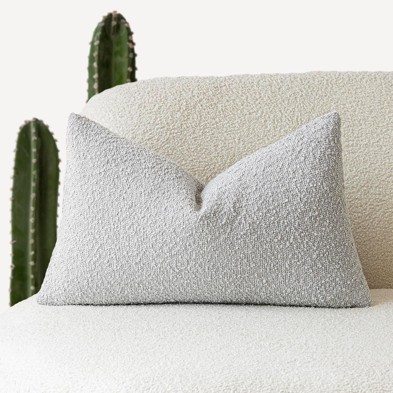 Foindtower Textured Boucle Throw Pillow Covers Accent Solid Lumbar Pillow Cases Cozy Soft Decorative Couch Cushion Case for Chair Sofa Bedroom Living Room Home Decor, 12 x 20 Inch,Light Grey