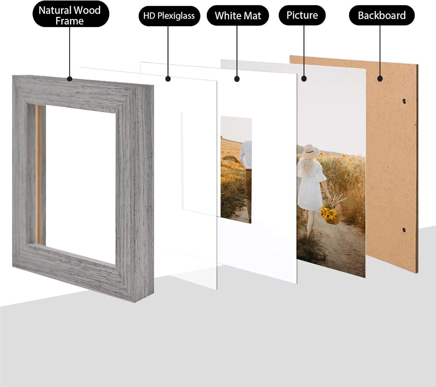 - ATTRACTIVE DESIGN:The Kinlink 5x5 grey wood picture frames feature a natural wood color and a curved bevel, creating an attractive and stylish look. The smooth wood grain lines can seamlessly complement any decorative style. These frames are perfect for highlighting your valuable and cherished memories.