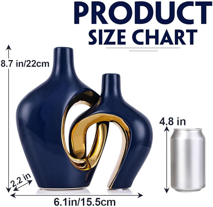 - Exquisite Blue and Gold Ceramic Craftsmanship: Our set of 2 blue and gold ceramic vases showcases a blend of timeless tradition and modern aesthetics, meticulously handmade to ensure each piece radiates elegance and high quality