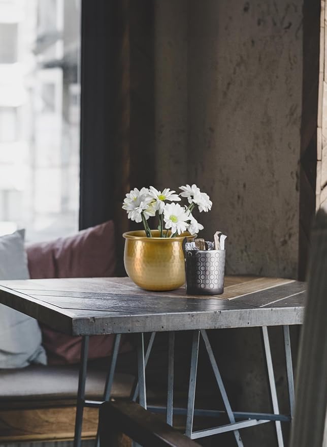 - This exquisite piece seamlessly blends vintage aesthetics with modern elegance, making it the perfect addition to any home or special occasion. An aluminum decorative Pot with a Brass Look is perfect for any use around the home