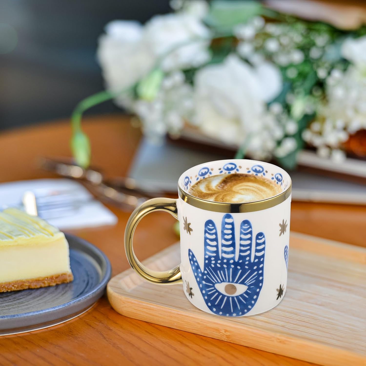 Evil Eye Ceramics Coffee Mugs 12oz Perfect for Cappuccino Latte Tea Beer Hot and cold drinks, Coffee Cups for home and office, Dishwasher Safe (Palm)