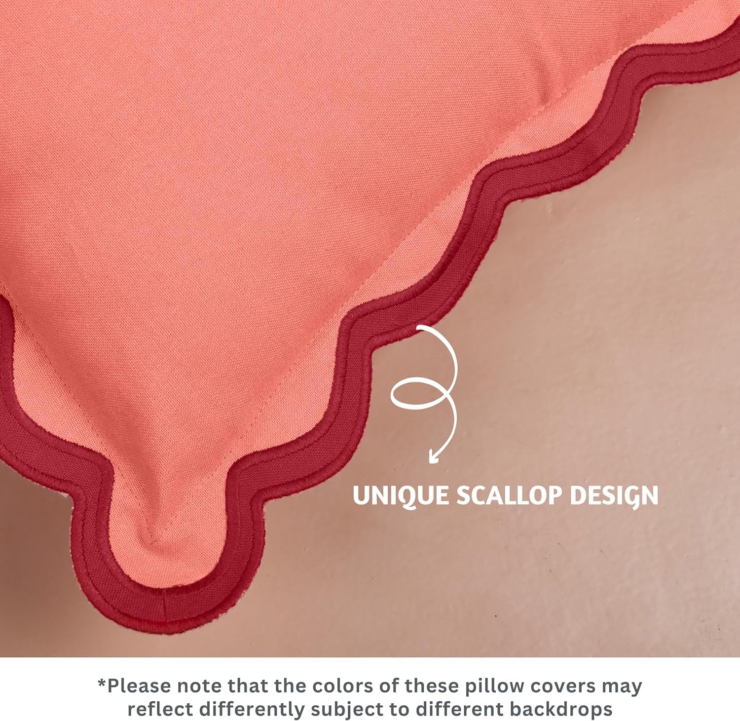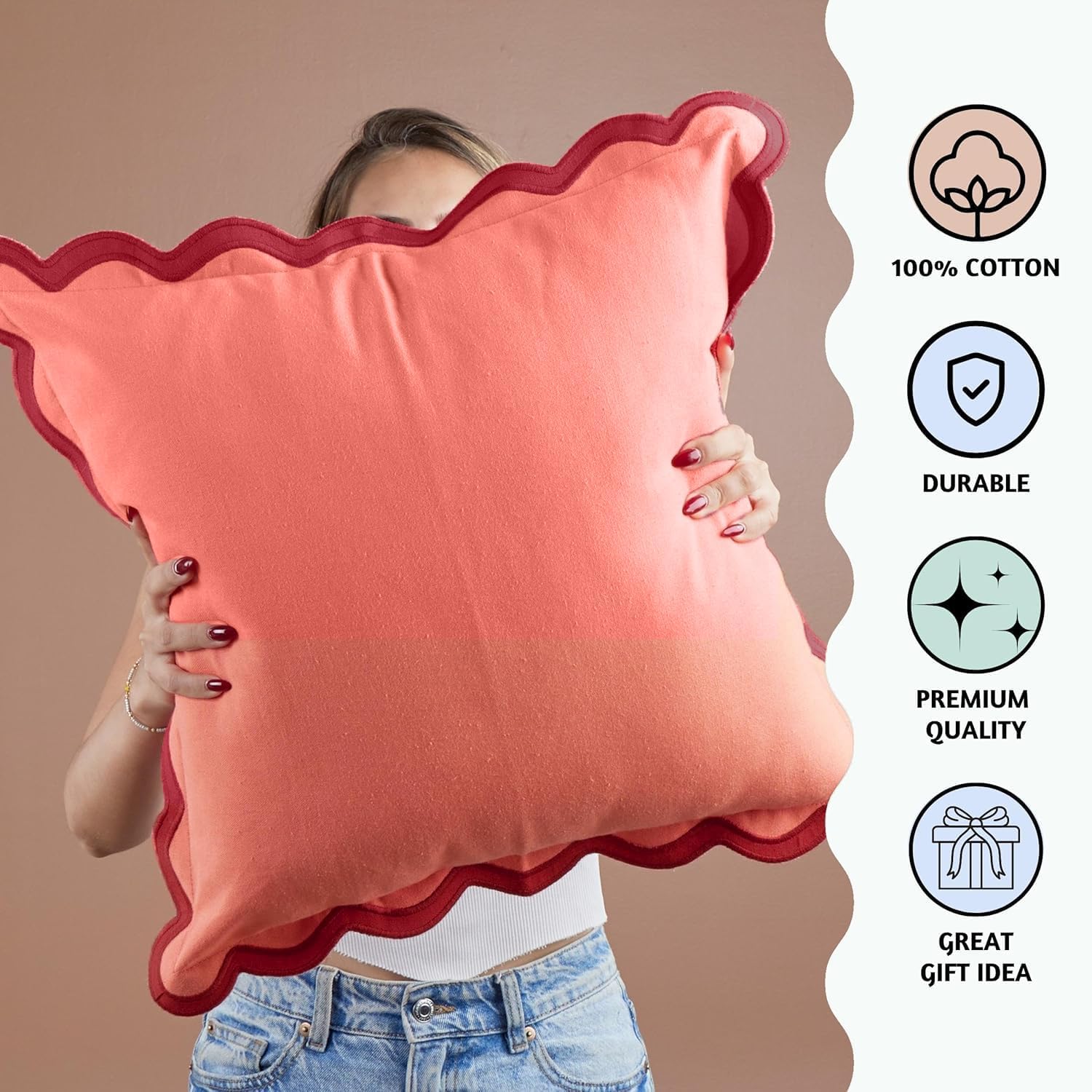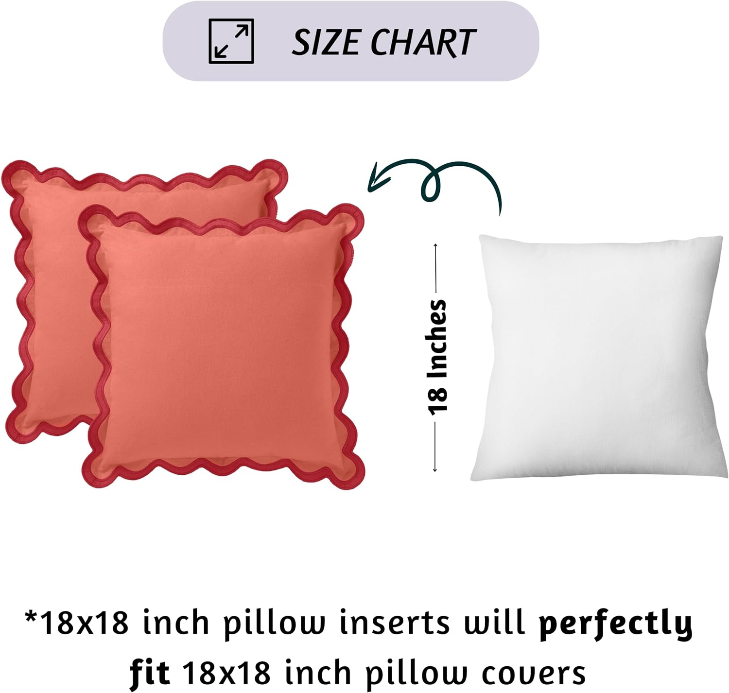 Folkulture Christmas Throw Pillows for Couch | Set of 2 (18x18) Boho Throw Pillow Covers | Red Scalloped Accent Pillows | Xmas Decor for Living Room