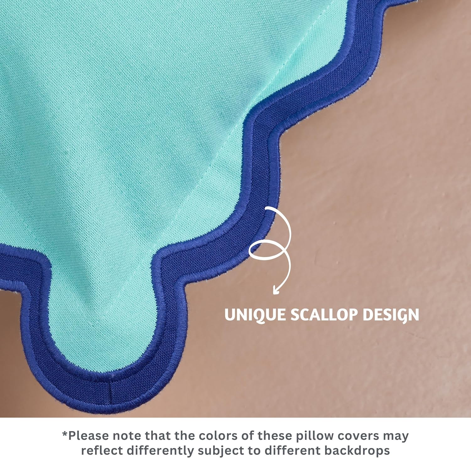 Folkulture Throw Pillow Covers 18x18, Set of 2 Cotton Scallop Pillow Cover, Decorative, Cute Outdoor, Boho for Couch, Blue