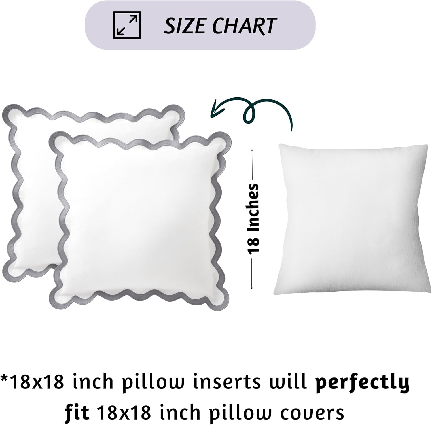 Folkulture Throw Pillow Covers | (18 x 18) Set of 2 Scallop Pillow Cover | Cute Outdoor Pillows or Decorative Pillows Standard Size | Cotton Couch Pillows for Living Room | White Throw Pillows