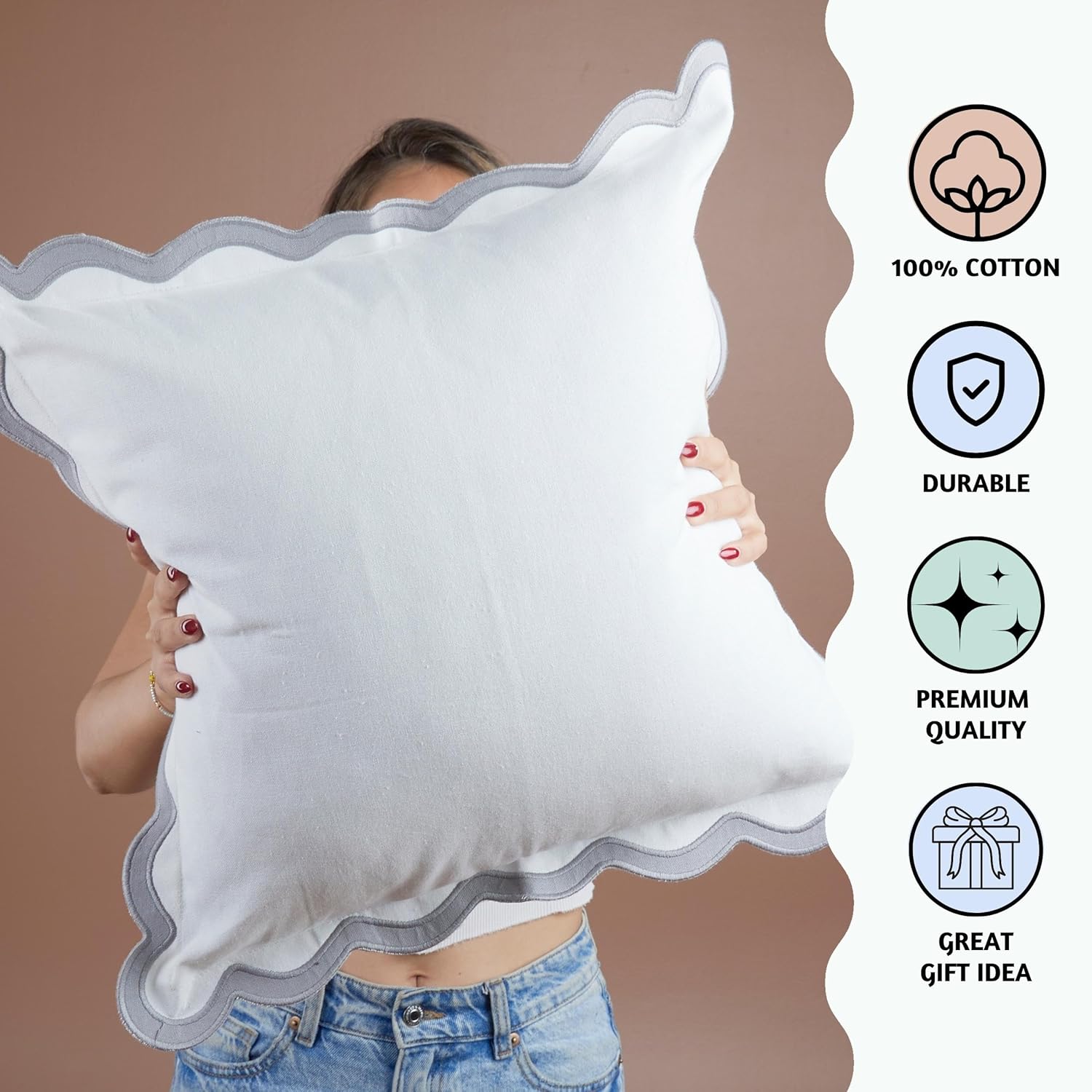 - [ FABRIC - Soft and Cozy ] - These white pillow covers are made of 100% Cotton and come as a set of 2. The pillows aesthetic or scalloped pillow covers are designed to give you utmost comfort with its soft and smooth fabric for your cushion inserts.