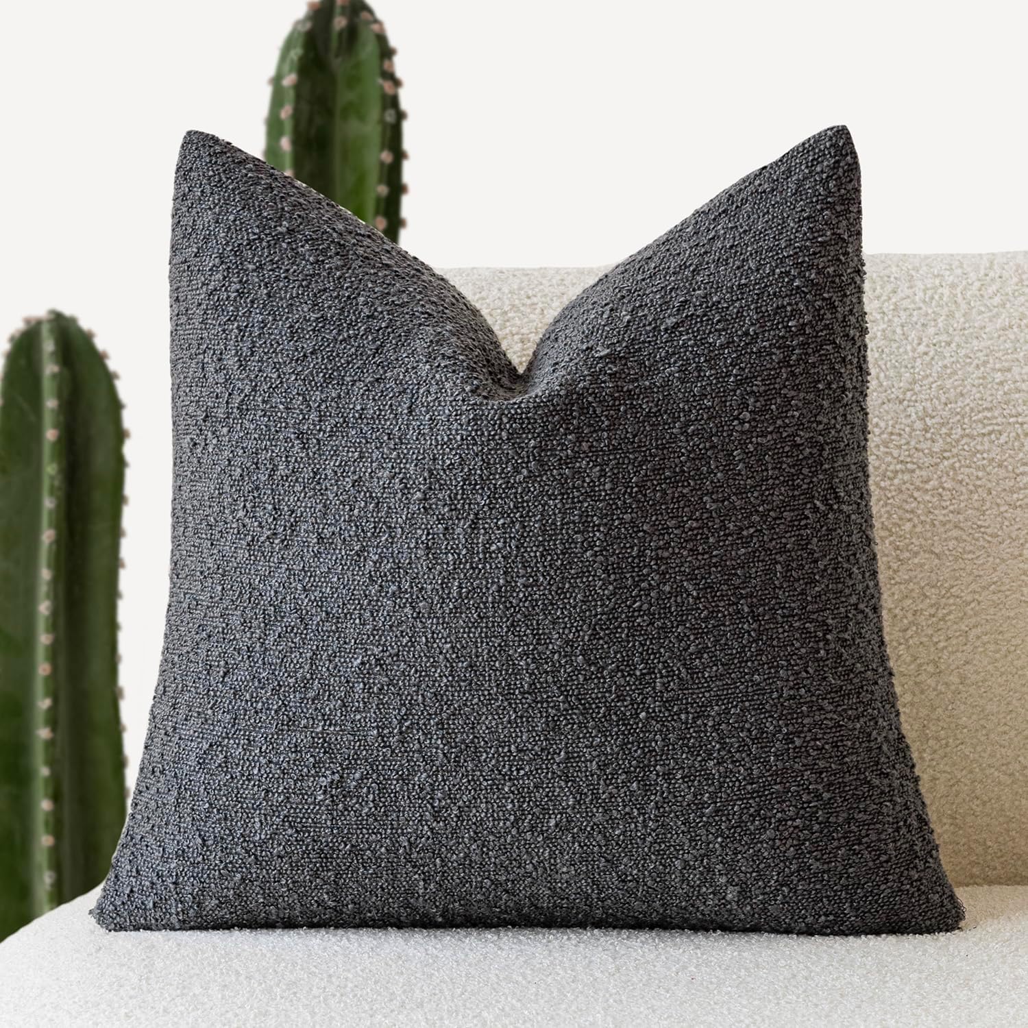 Foindtower Textured Boucle Throw Pillow Covers Accent Solid Pillow Cases Cozy Soft Decorative Couch Cushion Case for Chair Sofa Bedroom Living Room Home Decor, 20 x 20 Inch,Dark Grey
