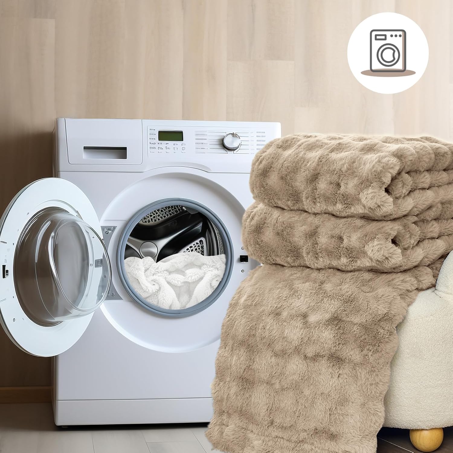 Faux Fur Light Camel Throw Blanket for Couch - Super Soft Heavy Flufyy Thick Bubble Throw Blankets for Bed Bedroom Living Room Farmhouse Sofa Chair Fall Winter Warm, 50x60 Inch