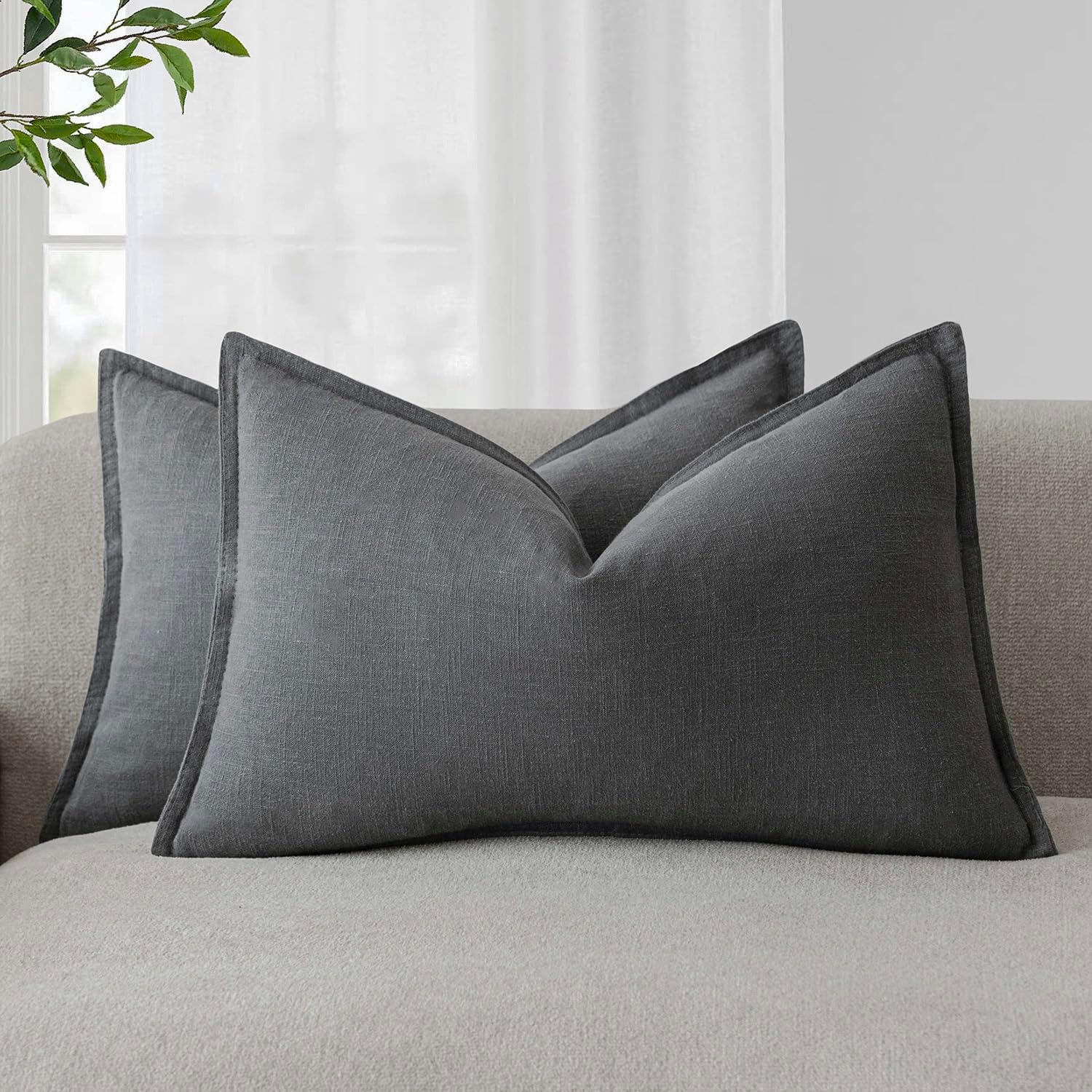 Foindtower Pack of 2, Decorative Linen Soild Throw Pillow Covers Soft Accent Lumbar Cushion Case Boho Farmhouse Pillowcase for Chair Couch Sofa Bedroom Living Room Home Decor 12 x 20 Inch Grey