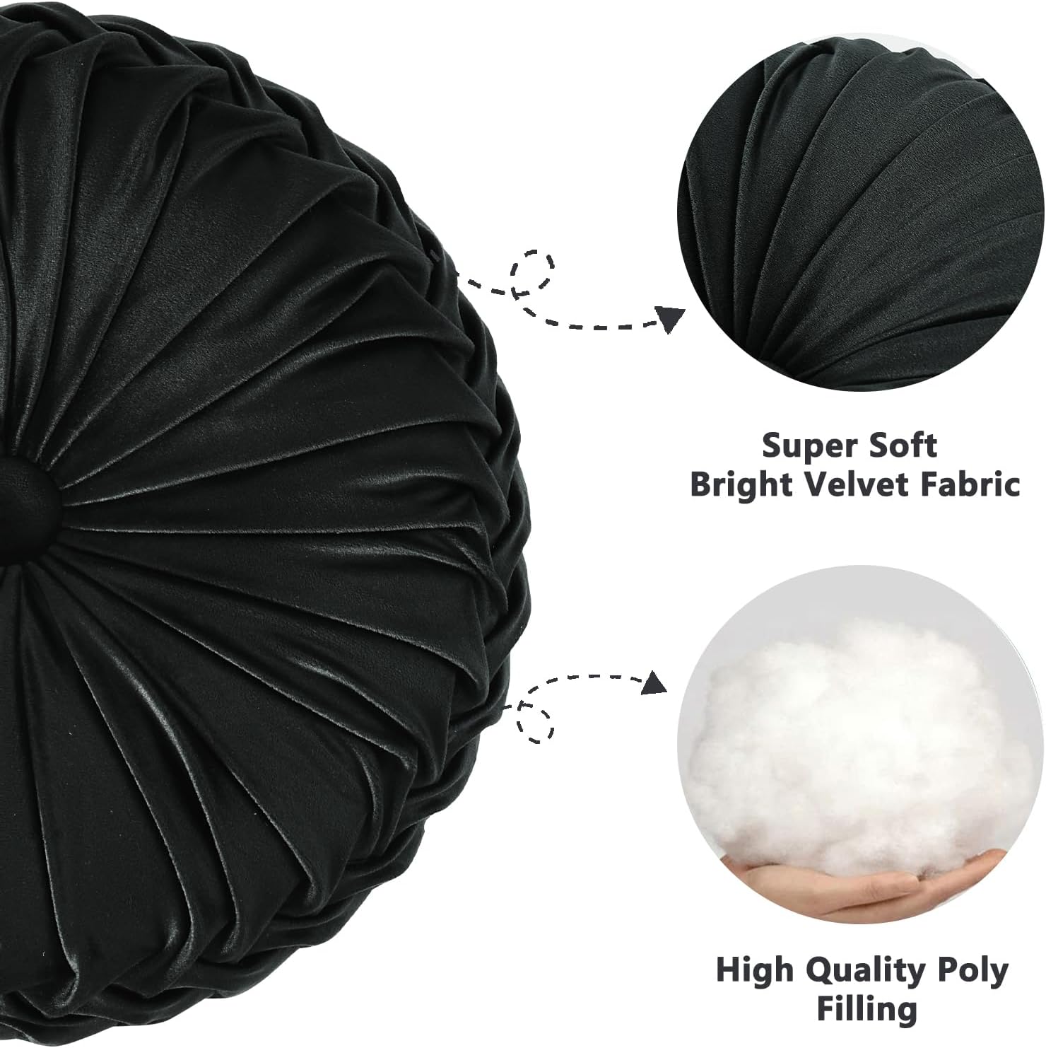 - EXQUISTIE HANDCRAFTED PLEATED DESIGN: This decorative round pillow with unique pumpkin shape is soft to the touch and has extra style with it’s pleated detailing. The intricately pleated design is sewed by hand, not by machine, which is more delicate and high-end. The elegant button in the middle ties together the complete look.