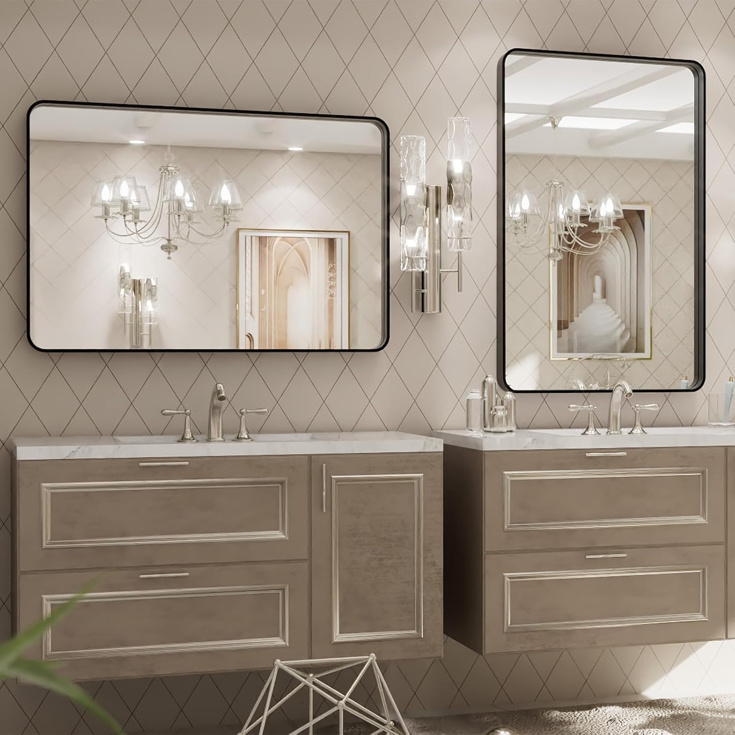 LOAAO 24X30 Inch Black Metal Framed Bathroom Mirror for Wall, Matte Black Bathroom Vanity Mirror Farmhouse, Large Rounded Rectangle Mirror, Anti-Rust, Hangs Horizontally or Vertically