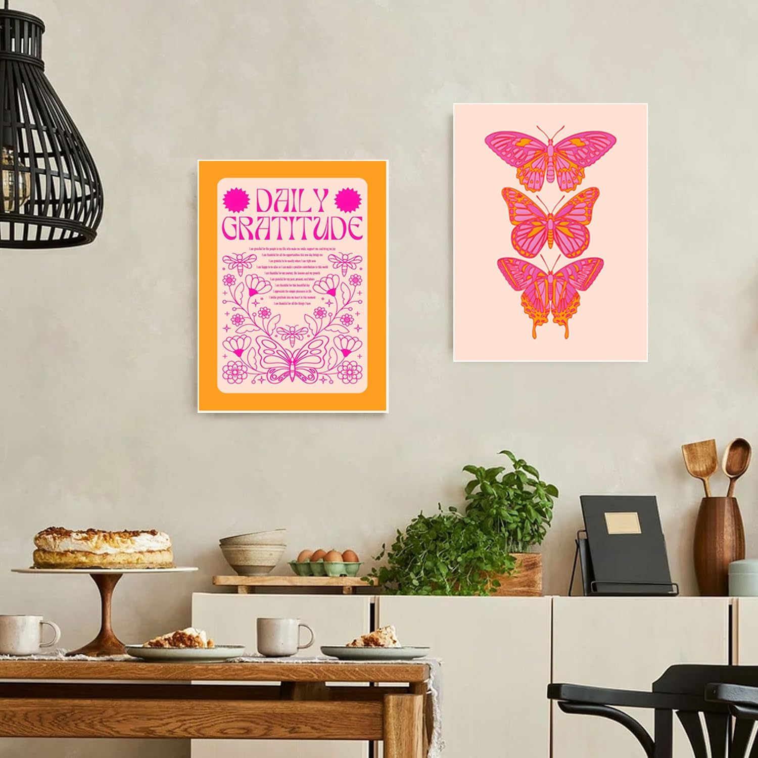 - 【Pink and Orange Butterfly Wall Art】 Daily gratitude wall art poster includeaura number posters, butterflies, and abstract elements, pink wall decor set helps create a personalized and inspiring space that reflects your unique personality and uplifting room decor
