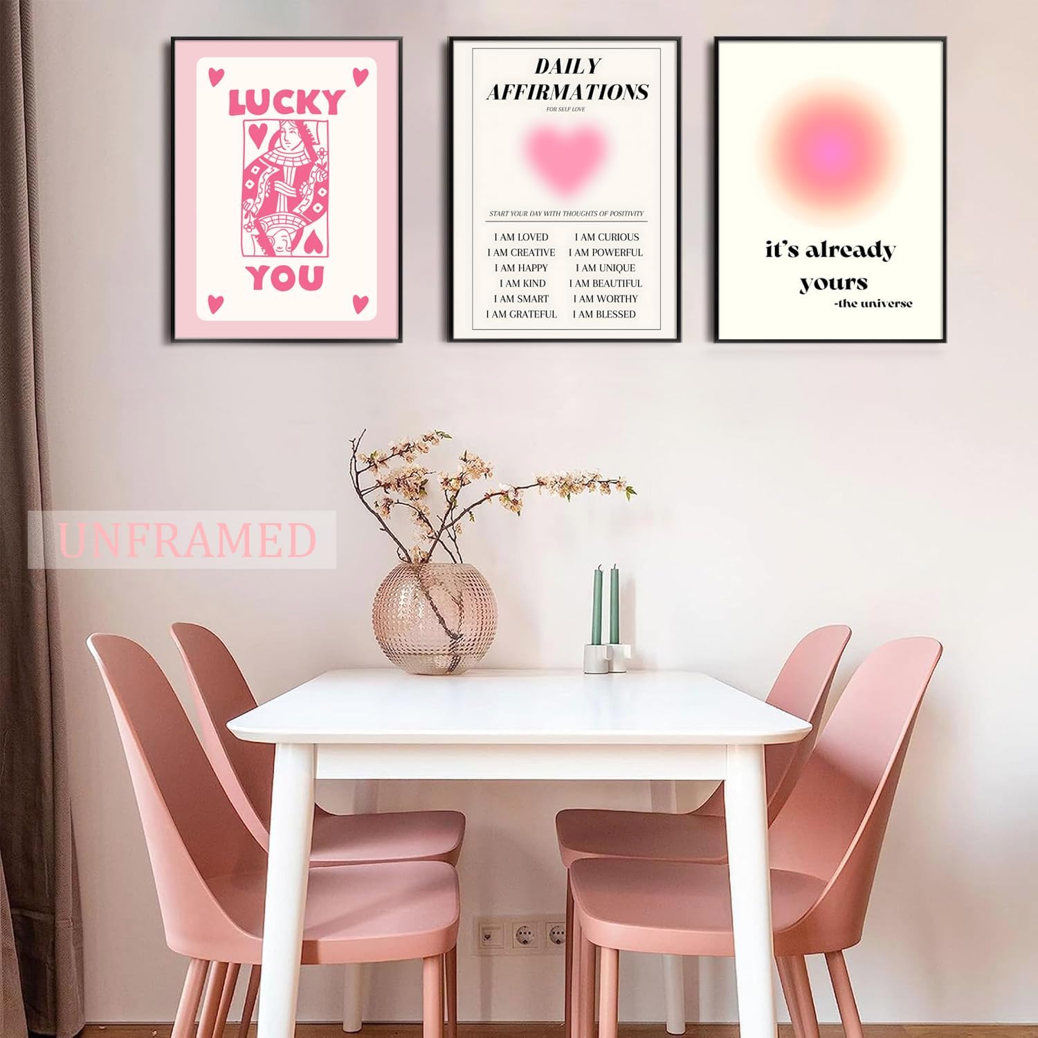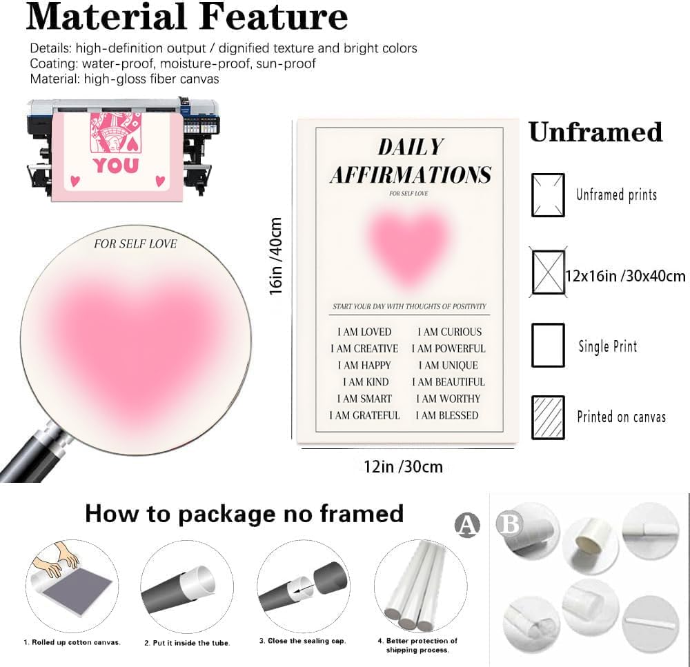 - Positive Vibes on Your Walls: Unframed Daily Affirmations Posters Cultivate a daily ritual of positivity with our unframed pink affirmation wall decor. Embrace each day with positivity . These room posters aesthetic pieces combine uplifting affirmations with chic, minimalist artistry, suited for anyone seeking daily inspiration without the constraints of a traditional frame.
