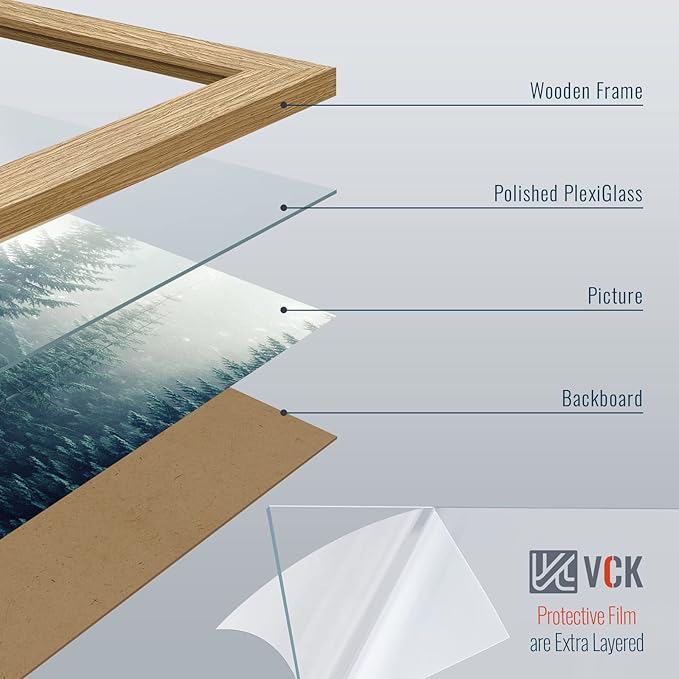 - FSC Frame: Simple yet elegant oak wood grain, A cultural heritage of classics and craftsmanship, satisfied, or money back. VCK is willing to sacrifice much more premium wood than other brands to craft frames extremely sturdy and durable. Corners and backboards are strengthened to say bravo to all your precious moments.