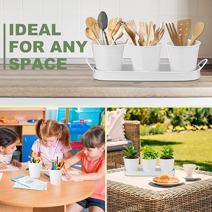 - Package Inclusions: this offer includes 2 sets of herb planter outdoor; With each set having 3 plant pots and a tray, you get to enjoy a total of 6 plant pots sized at about 4 x 4 inches and 2 trays measuring roughly 13.7 x 4 x 1 inches; This kit ensures you have sufficient you need to start your indoor gardening journey, suitable for planting mint, rosemary, basil and other herbaceous plants on kitchen, apartment, balcony, window, windowsill and other places