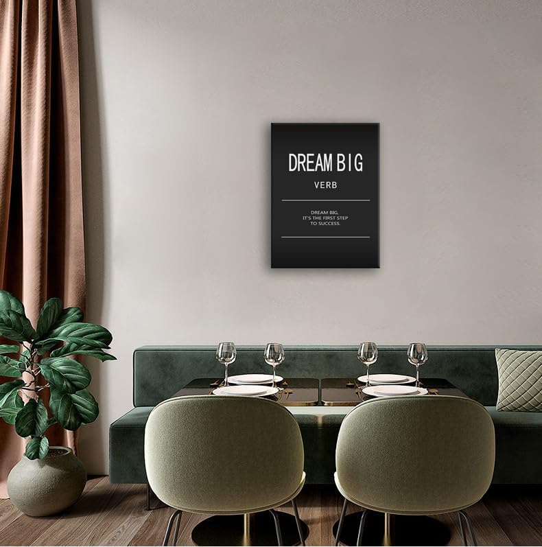 Inspirational Canvas Wall Art Dream Big Verb Motivational Posters Painting Quotes Office Wall Decor Positive Affirmations Pictures Wall Decor Classroom Living Room Decor Framed Artwork[18" W x 24" H]