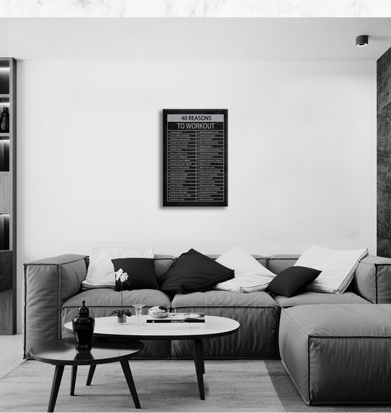 Inspirational Wall Art Inspirational Office Decor Wall Positive Quotes Success Poster 40 Reasons to Workout Canvas Artwork Picture Print Framed for Home Living Room School Wall Decor[24" W x 36" H]
