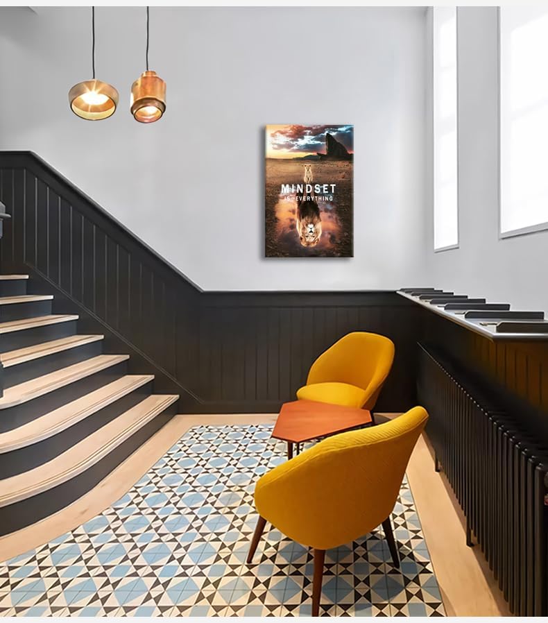 Mindset is Everything Inspirational Canvas Wall Art Motivational Painting Inspiration Quotes Success Posters Prints Artwork Modern Gym Home Office Decor Framed Ready to Hang[24" W x 36" H]
