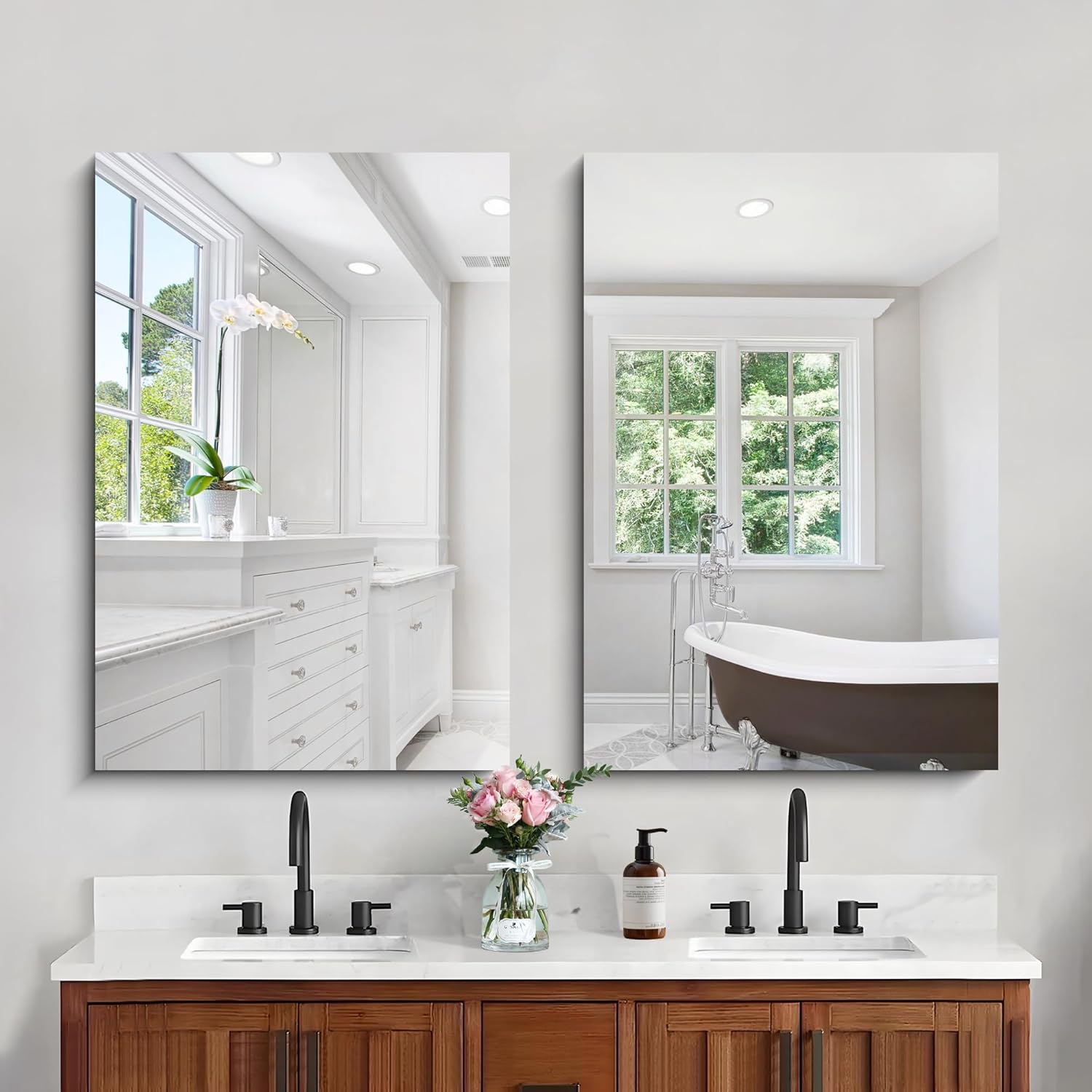Frameless Mirror, 24x36 Inch Bathroom Mirror for Wall, Rectangle Bathroom Vanity Mirrors with Polished Edge, Hangs Horizontally or Vertically for Bathroom, Bedroom and Living Room