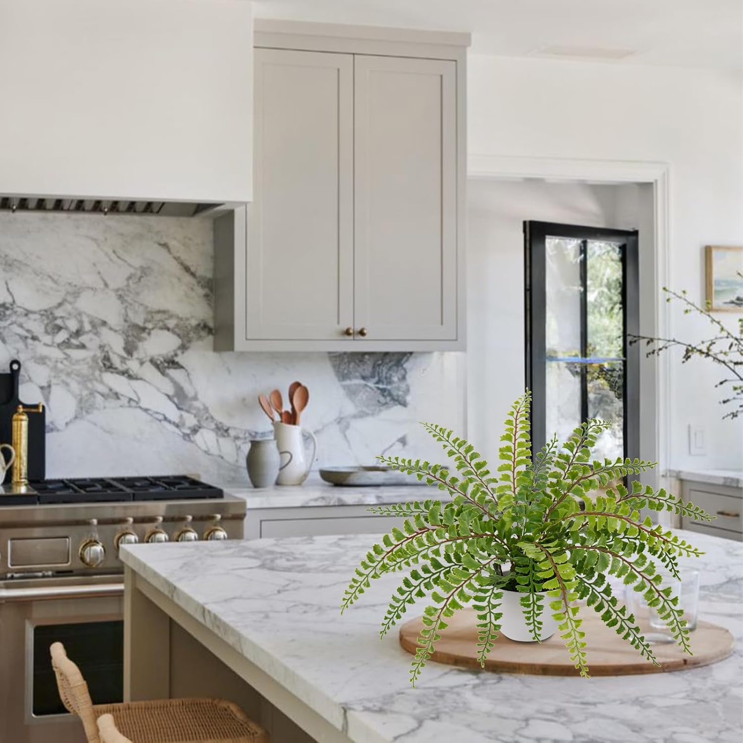 - 【Multi-scene Decoration Use】 Artificial fern is designed for outdoor & indoors decoration. These lifelike faux Boston ferns for outdoor planter large add a charming conception to your front porch, walkway, garden, kitchen,Office, windowsill, living room, bedroom, terrace and garden fence. Artificial ferns potted for outdoors large is very suitable for daily home garden decoration, birthdays, holidays, weddings, memorial places etc.