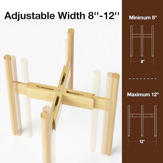 - 【Adjustable Width】Our indoor bamboo plant stand is adjustable from 8 to 12 inches in width; It fits pots in size of 8 9 10 11 12 inches; allowing you to place plant pots of different sizes; Pot and plant are not included
