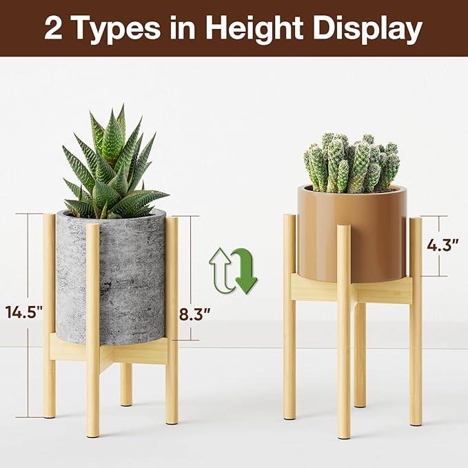 - 【Awesome Addition to Room Decor】The bamboo and wood with simple texture and beautiful color could blend well with your furniture style; Our mid century modern plant stand will improve the decor of your living room dining room bedroom office balcony and more