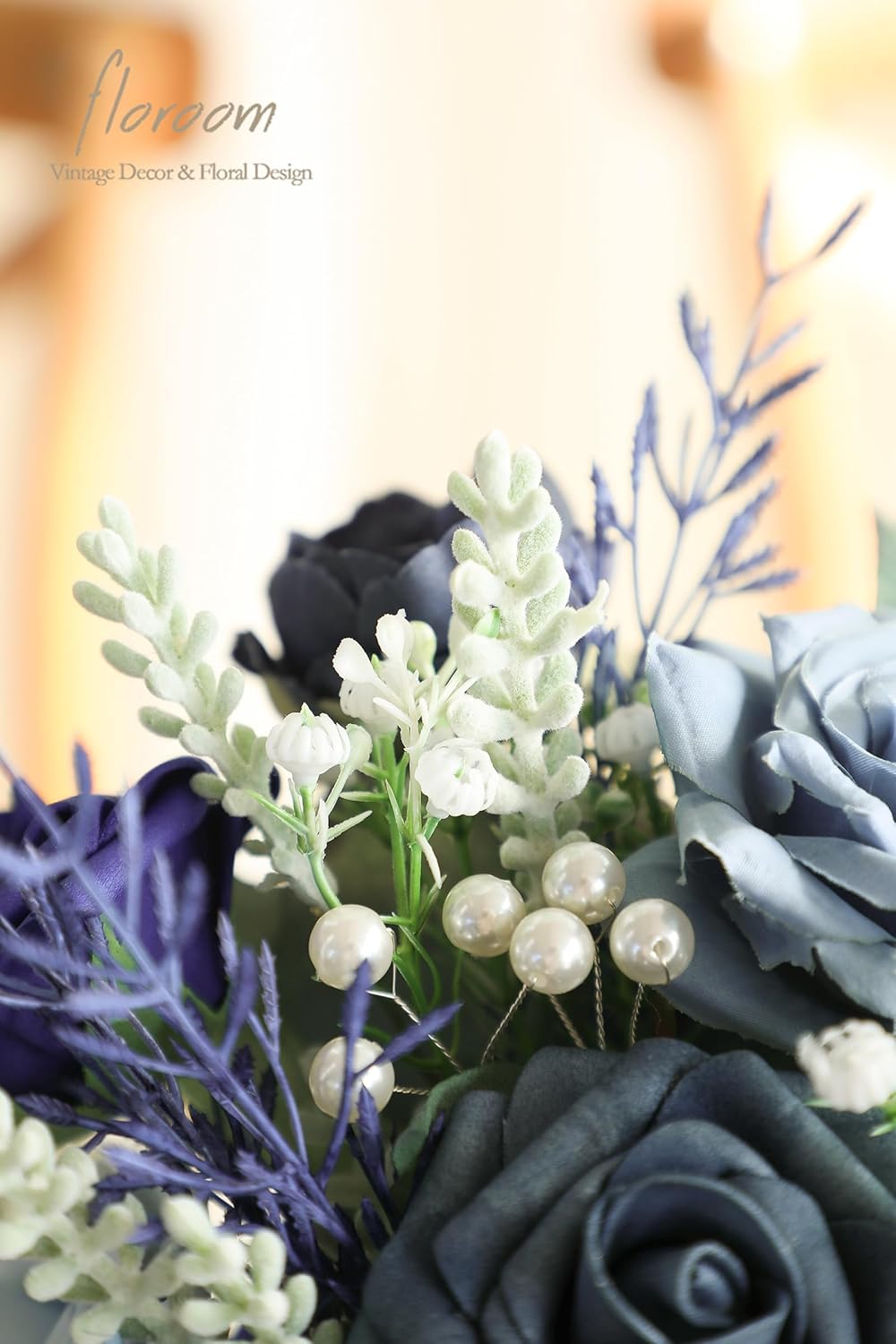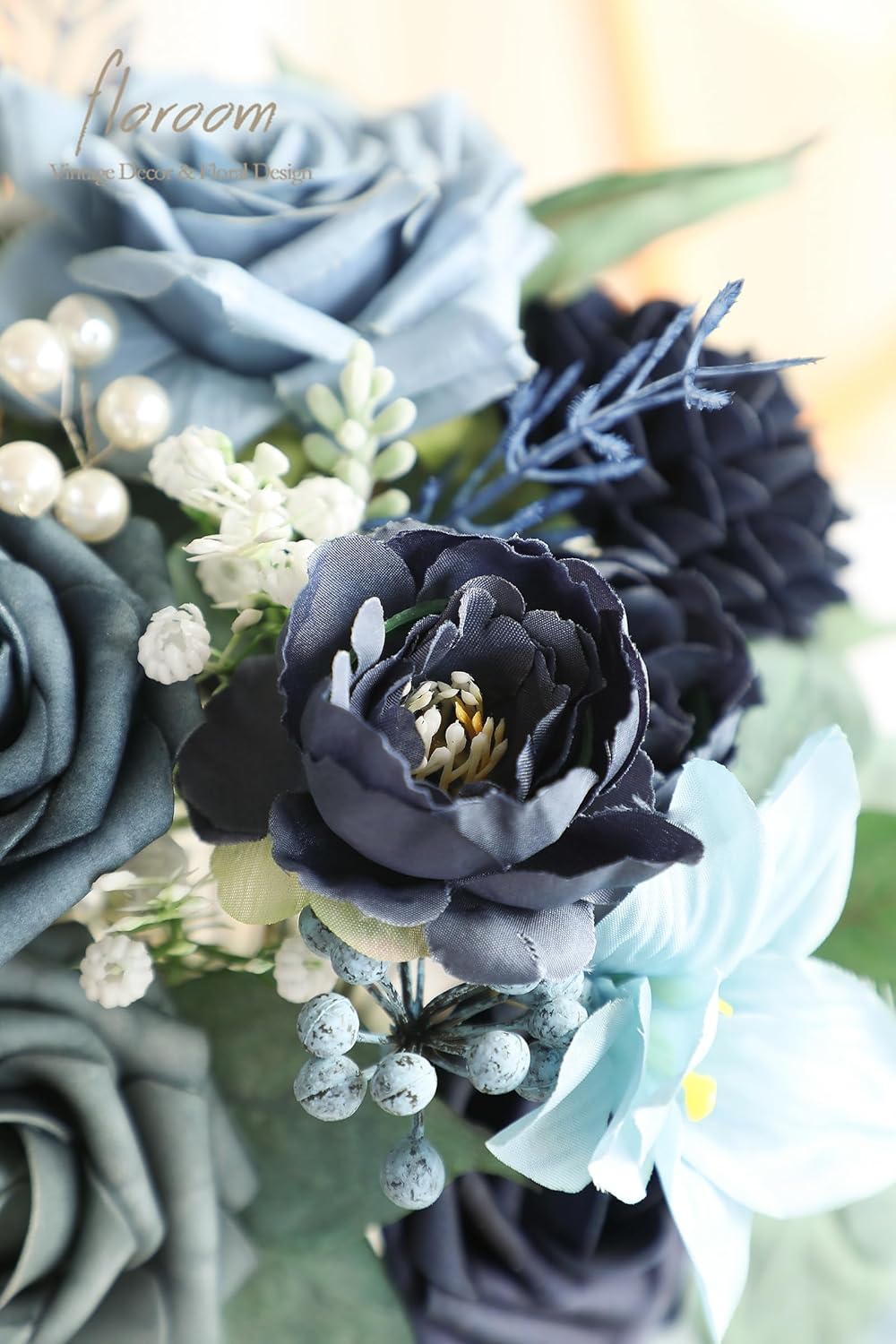 Floroom Artificial Greenery Stems Box Set, 59pcs with 8 Kinds of Faux Greenery Flowers Picks for DIY Bridal Bouquets Wedding Floral Arrangement Table Centerpieces, Navy & Dusty Blue