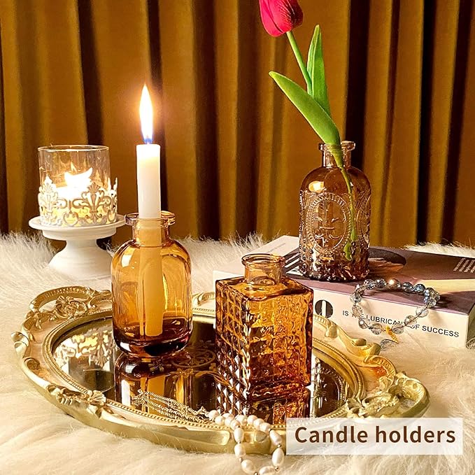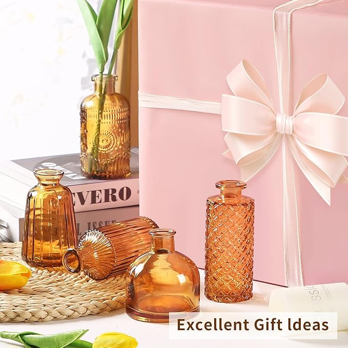 - Exquisite Craftsmanship: Crafted from premium-quality glass material, our bud vase set ensures both durability and elegance. The smooth bottle mouth offers a comfortable touch, while the thickened bottom provides enhanced stability. Adorned with unique etched patterns, these vases exude a timeless vintage charm, seamlessly blending into various room aesthetics.