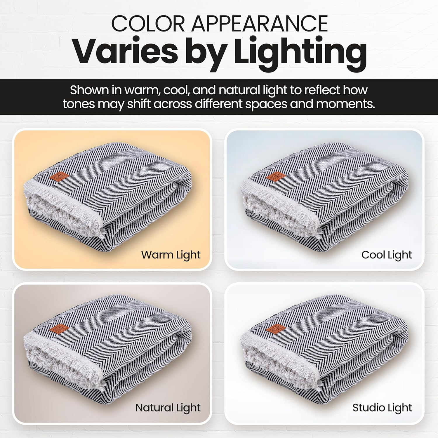 - CELEBRATE SUSTAINABLE STYLE: This 100% recycled cotton throw blanket is made in Turkiye, and it is a commitment to a greener planet; embrace our light blanket with rustic farmhouse charm, complete with a unique natural fringe design
