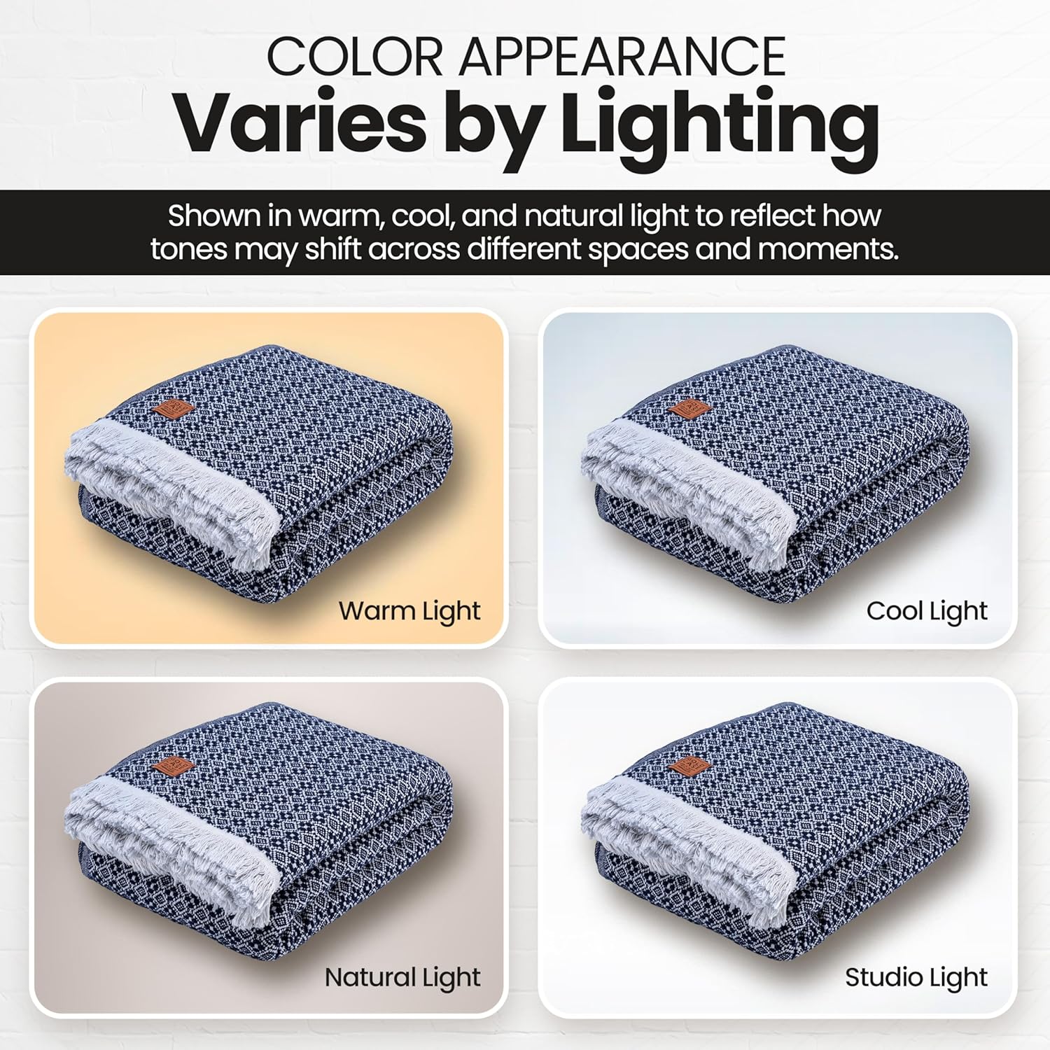 - CELEBRATE SUSTAINABLE STYLE: This 100% recycled cotton throw blanket is made in Turkiye, and it is a commitment to a greener planet; embrace our light blanket with rustic farmhouse charm, complete with a unique natural fringe design