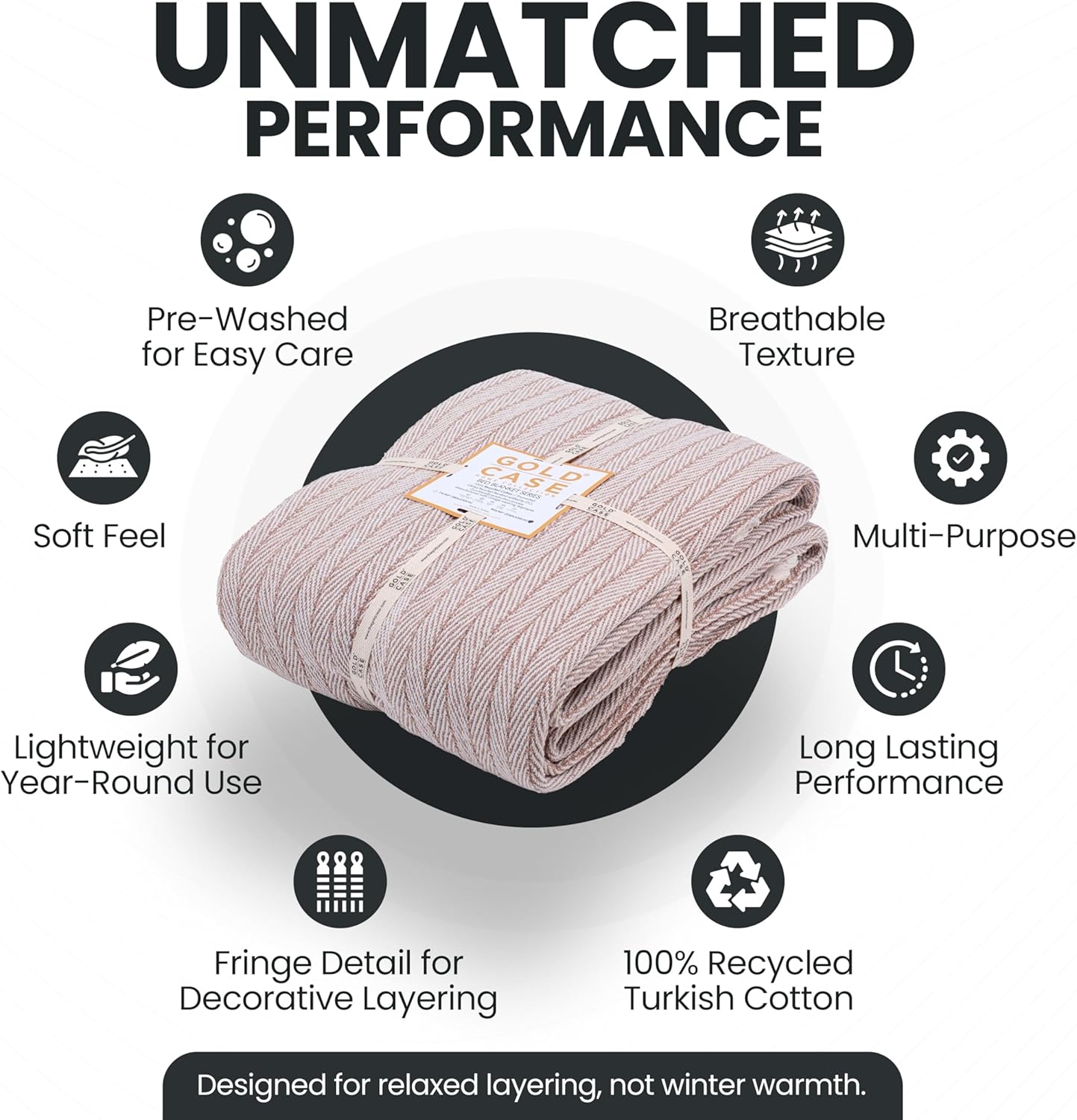 Gold Case Throw Blanket for Bed - 100% Recycled Turkish Cotton Blanket - Vintage Lightweight Soft Throw Blankets for Bed & Living Room - Twin Size Cozy Blankets - 71x90 - Beige