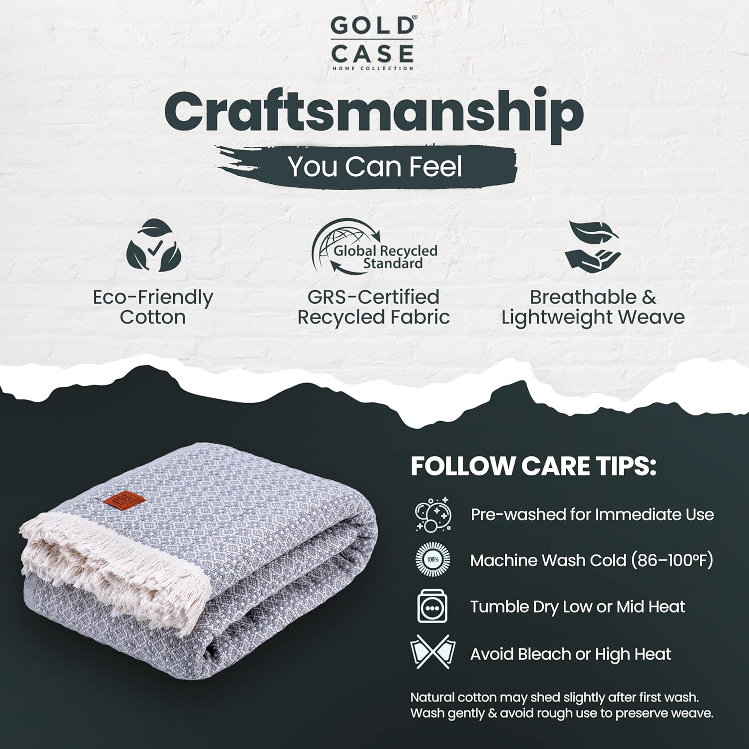 - CRAFTSMANSHIP BEYOND COMPARE: Made with natural recycled cotton, our woven throw blanket has a Global Recycle Standard certification by GCL International, every thread of our blanket is responsibly sourced and woven with care