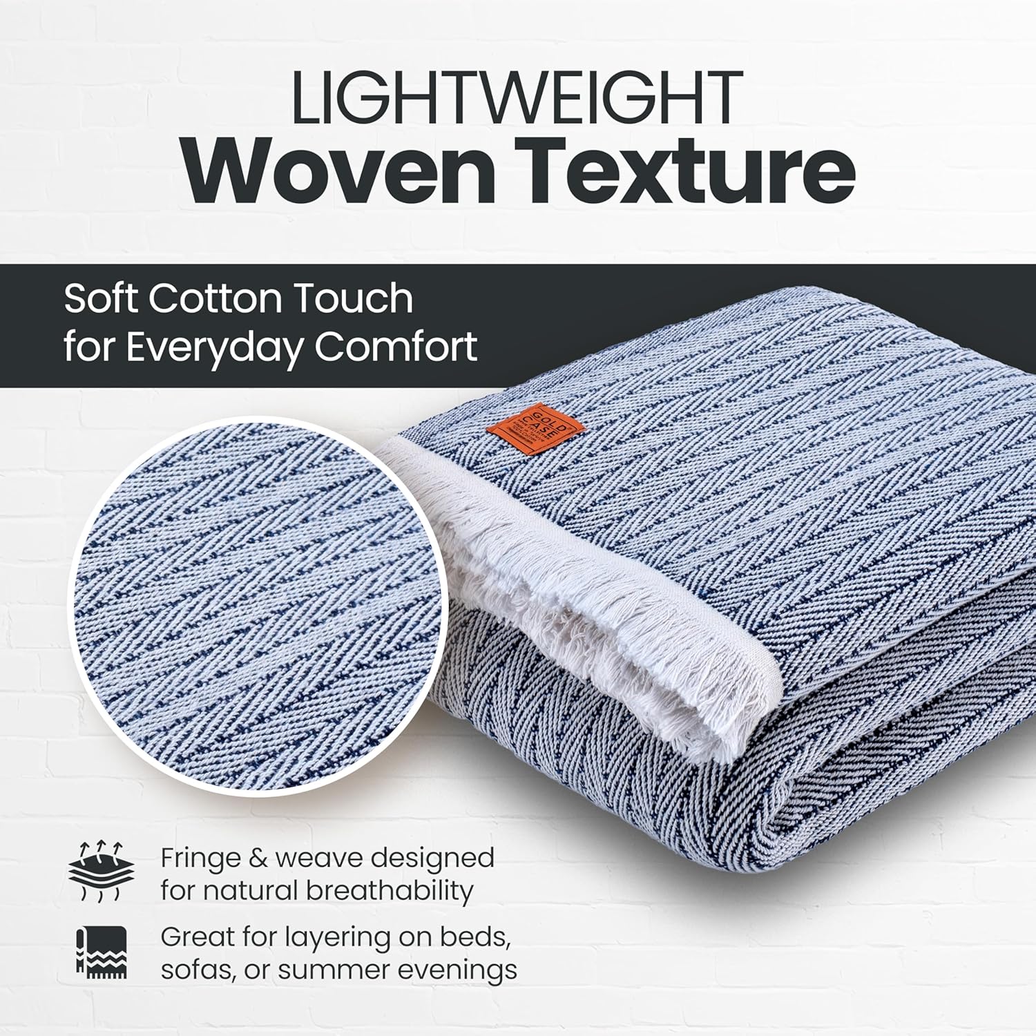 Gold Case Throw Blanket for Bed - 100% Recycled Turkish Cotton Blanket - Vintage Lightweight Soft Throw Blankets for Bed & Living Room - Queen Size Cozy Blankets - 90x90 - Navy Blue