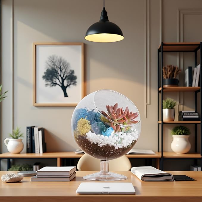 - MODERN GLASS DESIGN FOR ANY ROOM: The elegant chalice-shaped glass bowl that comes with this plant terrarium kit makes a stylish home for your living terrarium. A beautiful addition to desks, shelves, windowsills, or coffee tables—adds charm and natural life to your space.