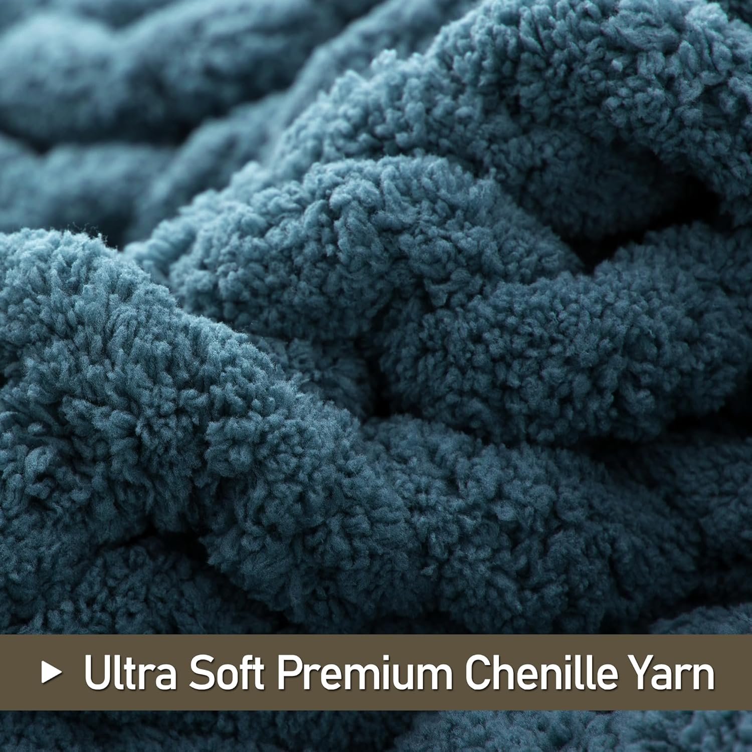 Chunky Knit Throw Blanket 60"X 80", 100% Handmade with Soft Chenille Yarn, 6.7lbs Thick Cable Knitted Blankets, Large Rope Knot Crochet Throws for Couch Sofa Bed Home Decor, Mineral Blue
