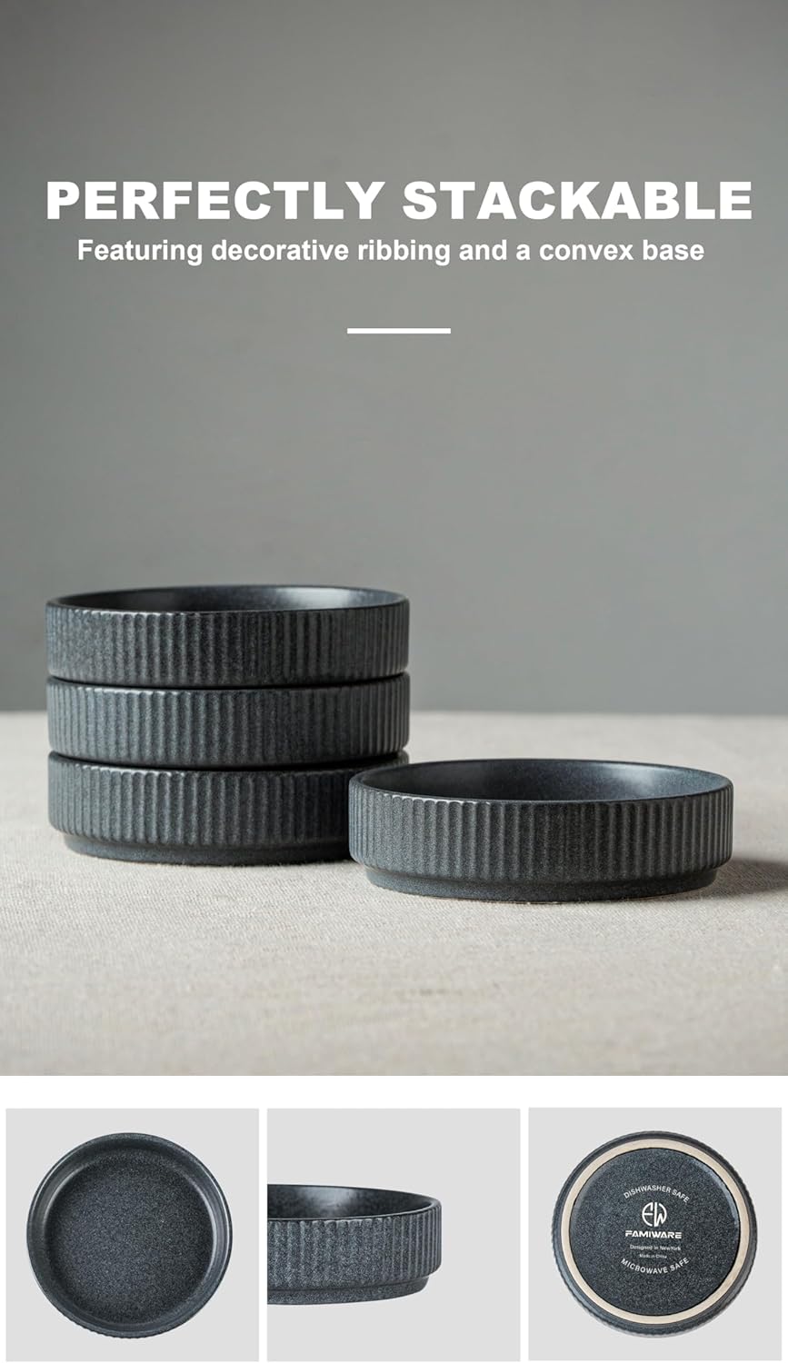 famiware Star Soy Sauce Dish Ceramic Dipping Bowls Set of 6, 4 oz Individual Dip Sauce Cups/Bowls/Dishes/Plates, Small Serving Bowl for Side Dishes, Dessert, Ice Cream, Sushi - Matte Dark Charcoal
