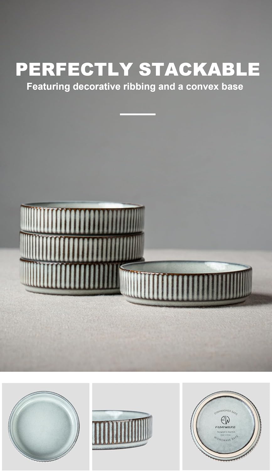 - PRACTICAL DESIGN: The high edges of these sauce bowls keep food secure and prevent it from spilling or sliding off. And they're stackable and don't take up much space