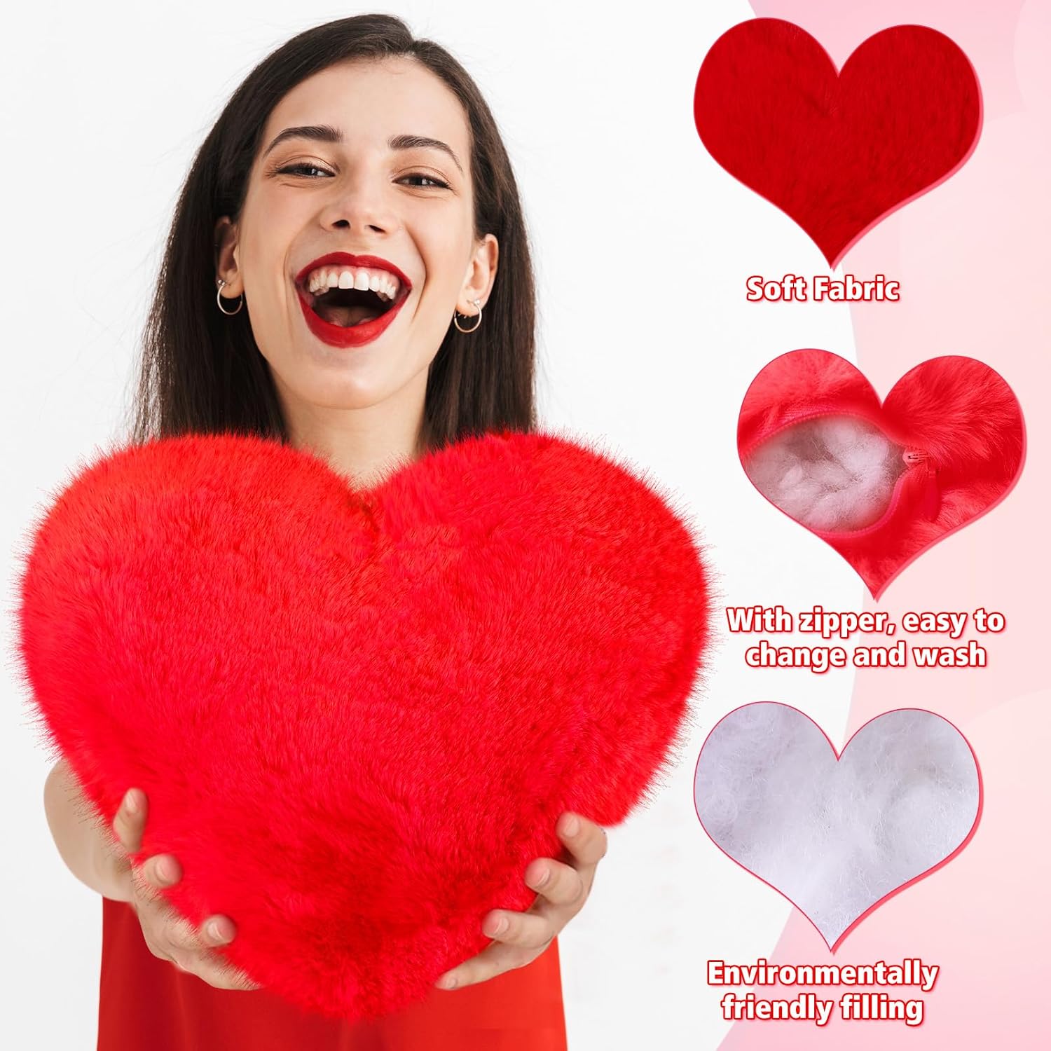 - Heart Shaped Design: our heart pillow adopts a cute heart shaped design with a furry appearance, which is more attractive to people; Different bright colors can make people feel warmth and care, and their mood will also improve when they have a good rest; Note: the product is vacuum compressed and packed; After receiving it, please pat and leave it for a period of time, will slowly restore the fluffy