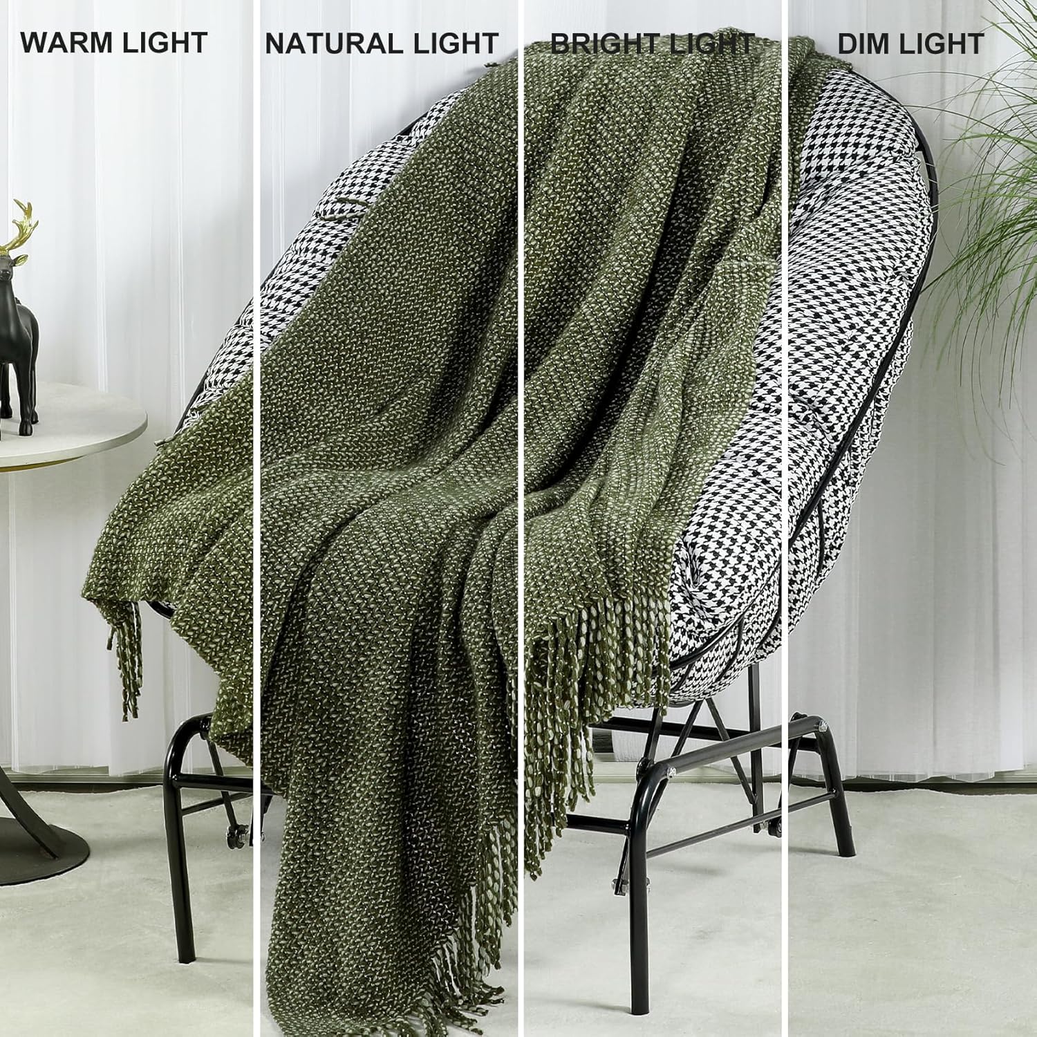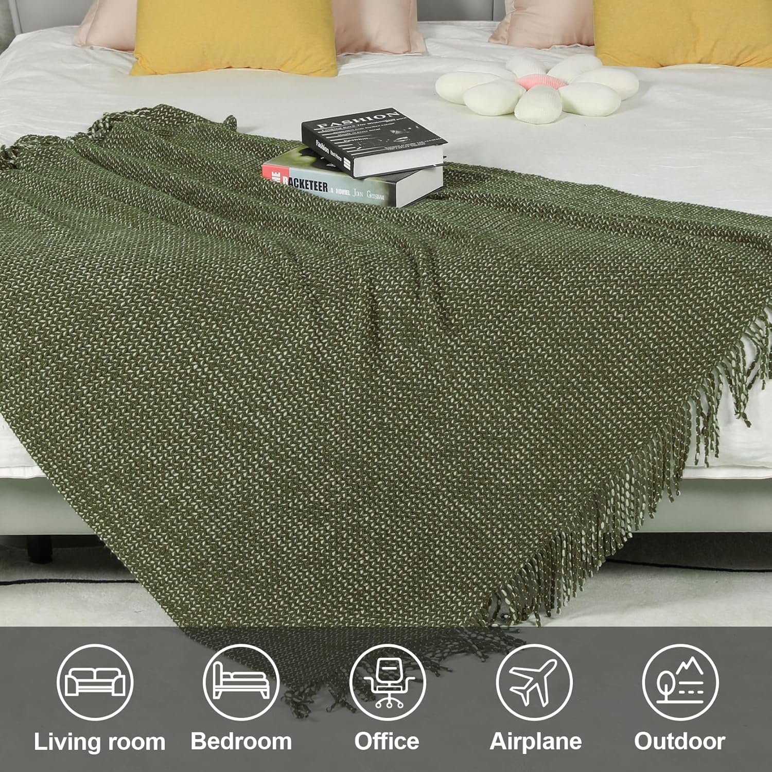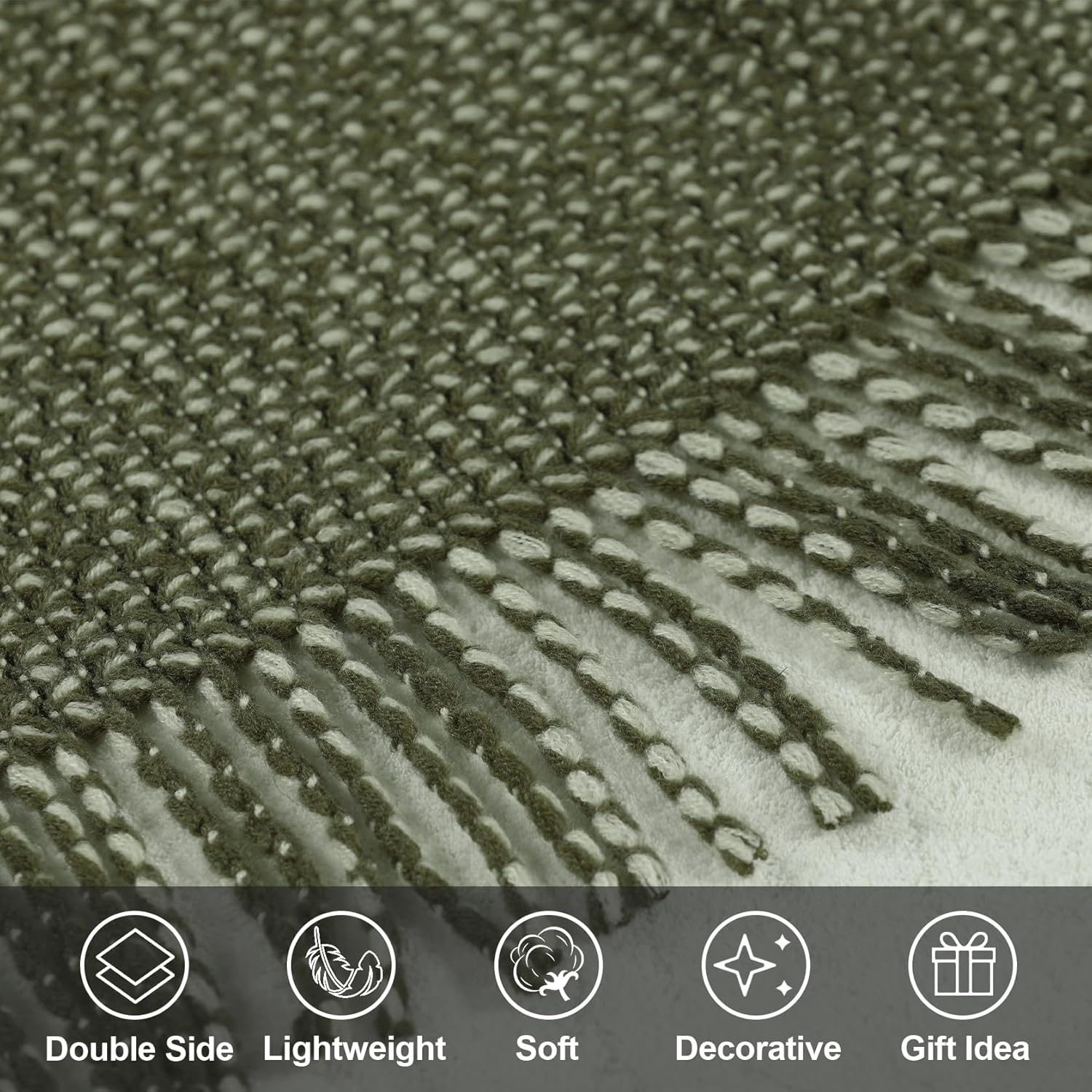Blagic Knitted Throw Blanket for Couch, Soft Farmhouse Throw Blanket with Tassels,Home Decorative Lightweight Blankets,Spring Throws for Bed/Chair/Sofa,Wheat Textured (Green & White,60" W x 80" L)