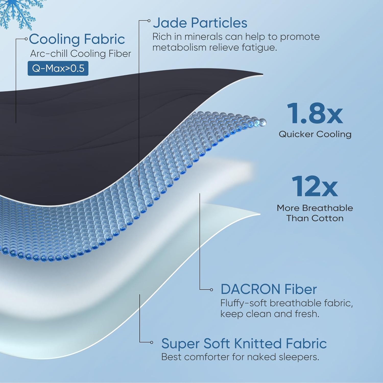 - DOUBLE-SIDED: The black side of this cool comforter is a fabric woven with Arc-Chill 3.0 cooling yarn, which can quickly absorb and release body heat to make you cool, very suitable for hot summer. The gray side features super soft knitted fabric that gives our cooling summer comforter an ultra-soft and airy feel, perfect for spring and autumn. All these breathable and skin-friendly material make our cooling summer blanket a strong option for people sleeping in the nude.