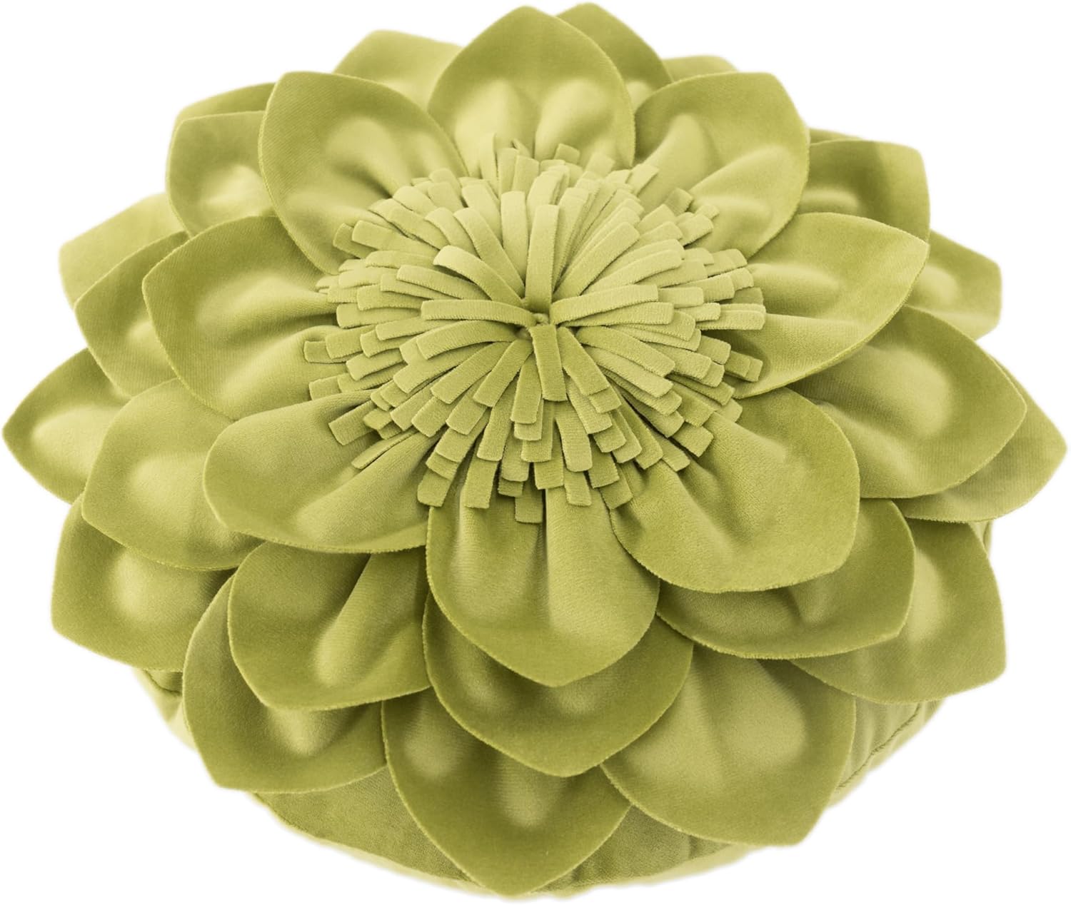 Decorative Throw Pillow 3D Flower Round Pillow Accent Handmade Cushion with Insert for Couch Bed Home Decor 14 Inch Green